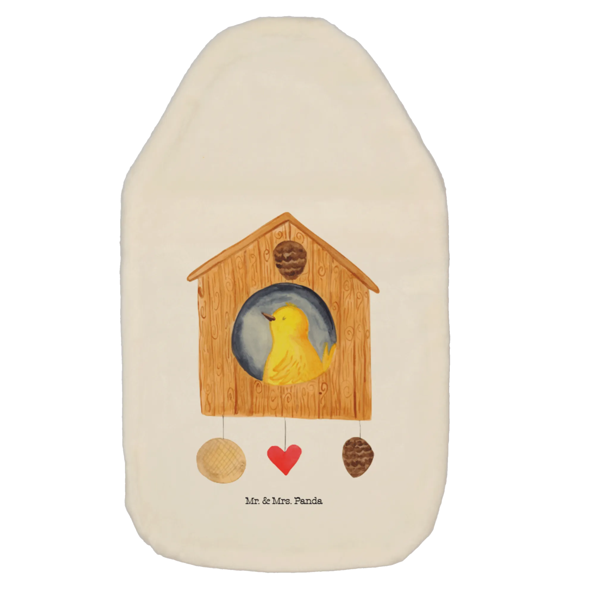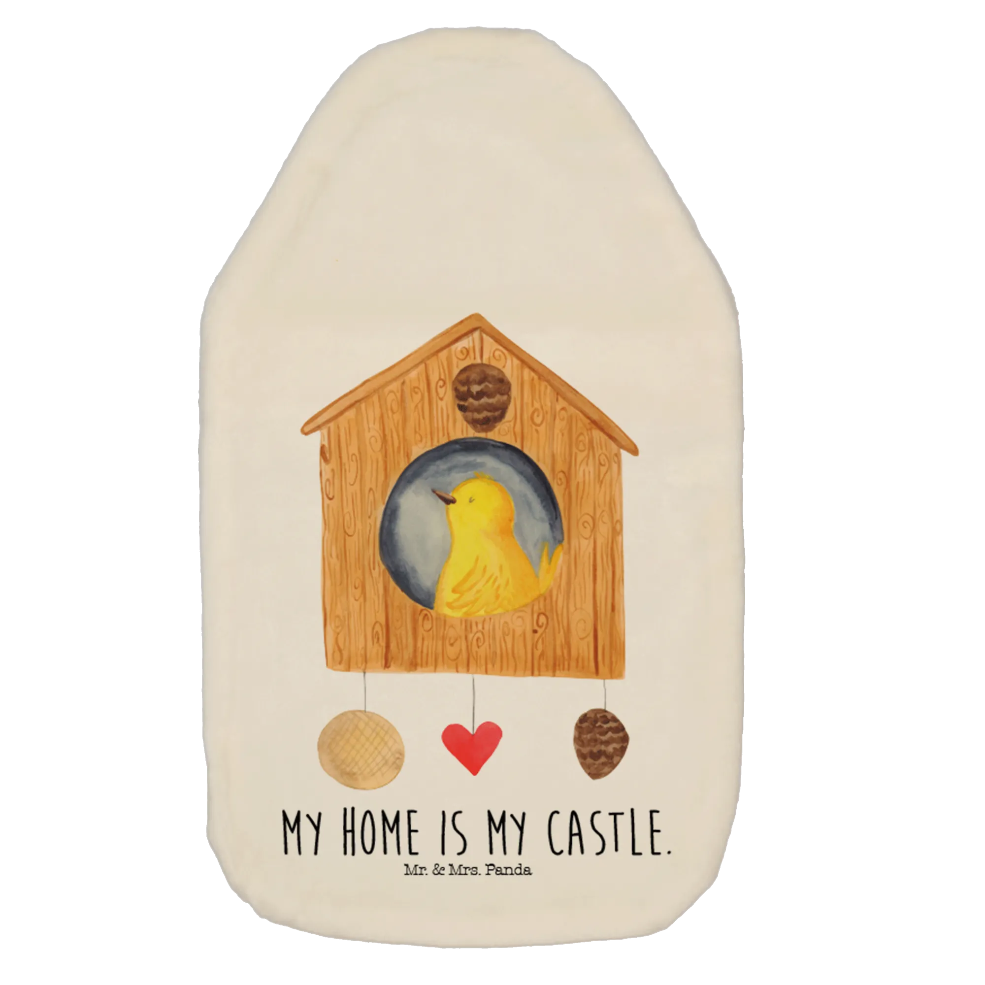 Hot water bottle Bird House - with a saying - Pastel Yellow