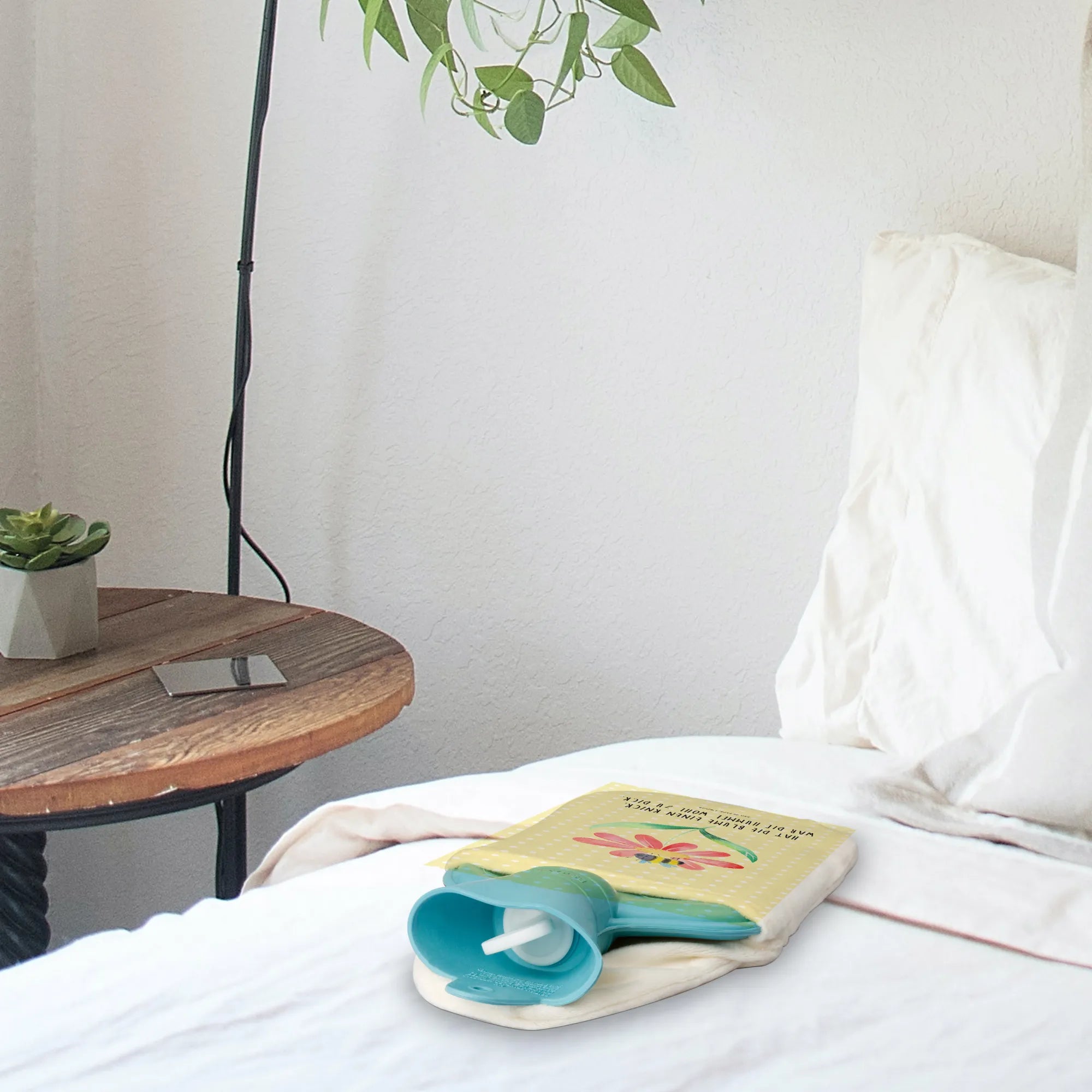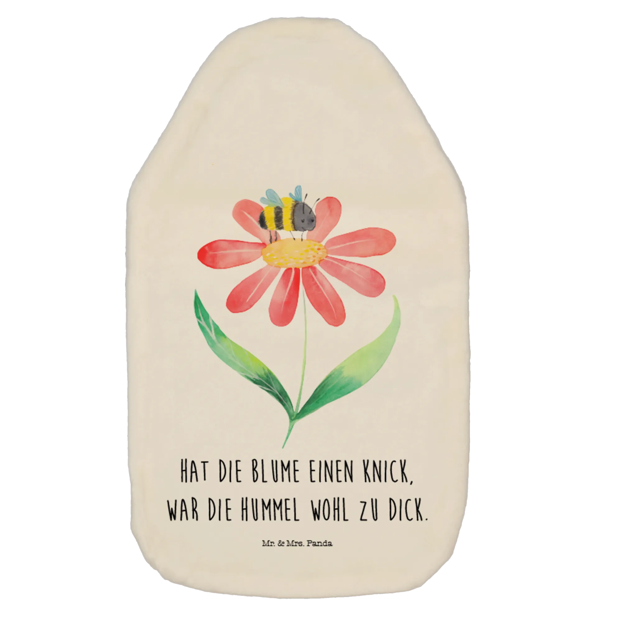 Hot water bottle bumblebee flower - with saying - White