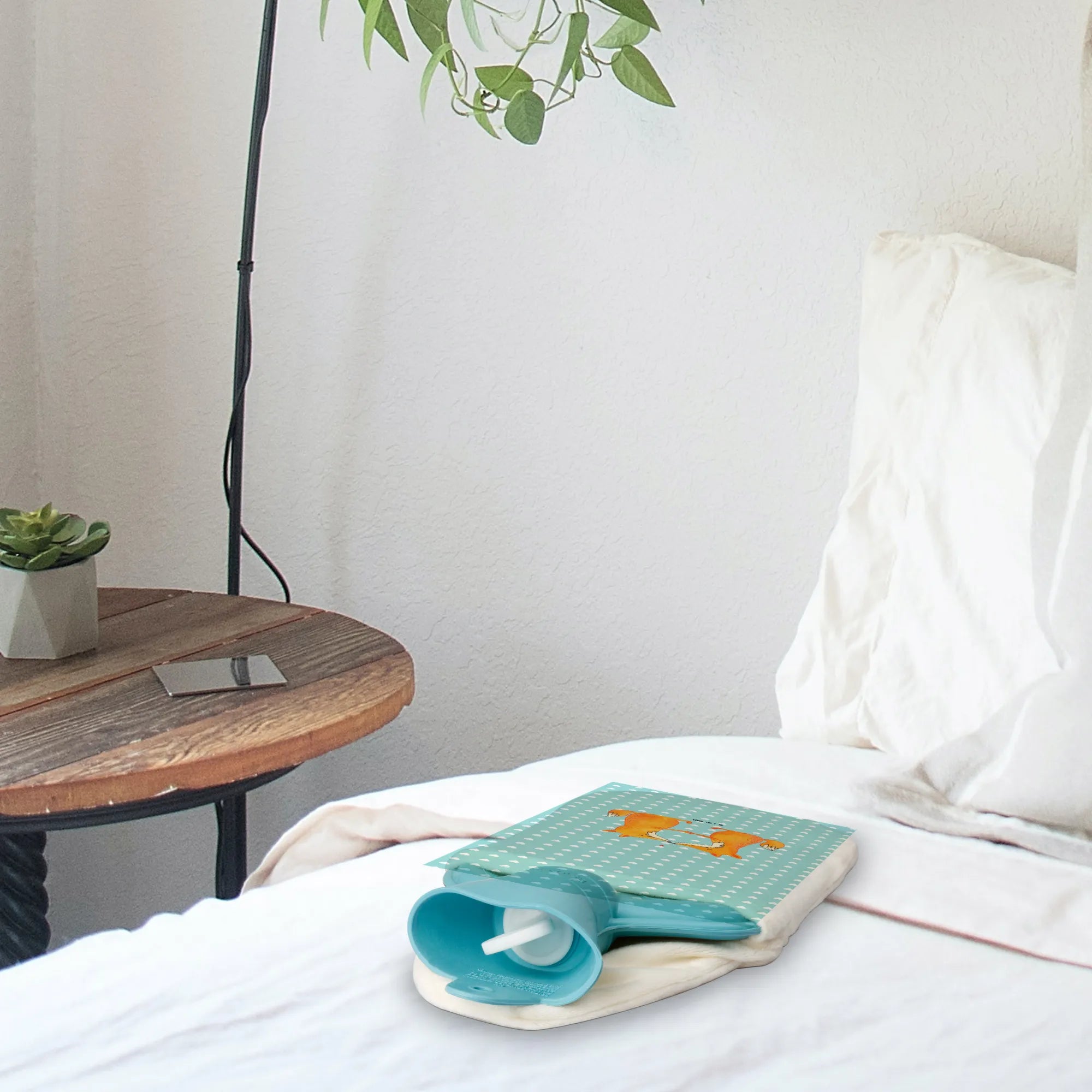Hot water bottle foxes Love - with saying - Turquoise Pastel