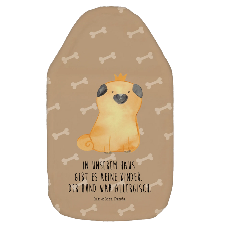 Hot water bottle pug Crown - with a saying - Happiness of dogs