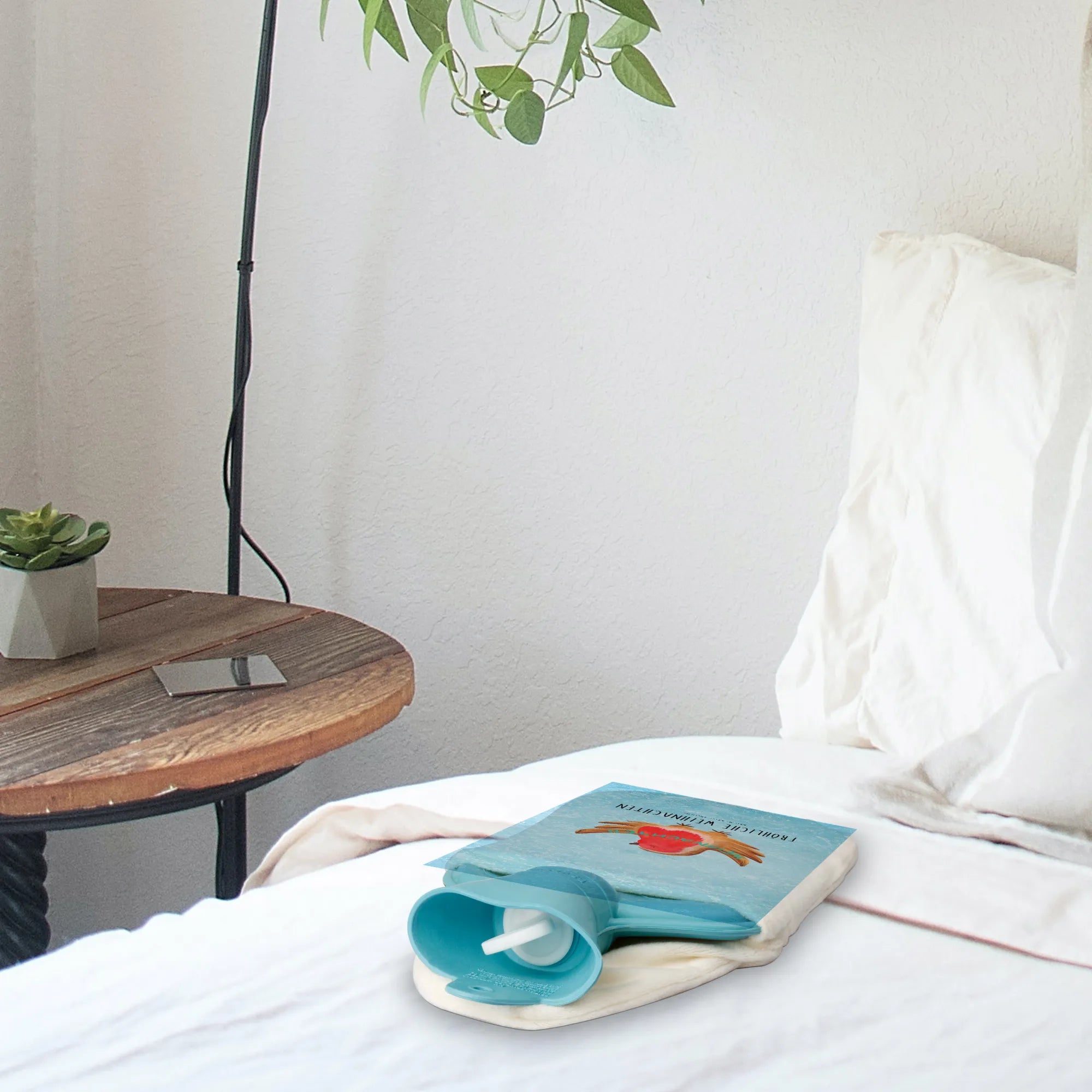 Hot water bottle robin Christmas - with saying - Ice Blue