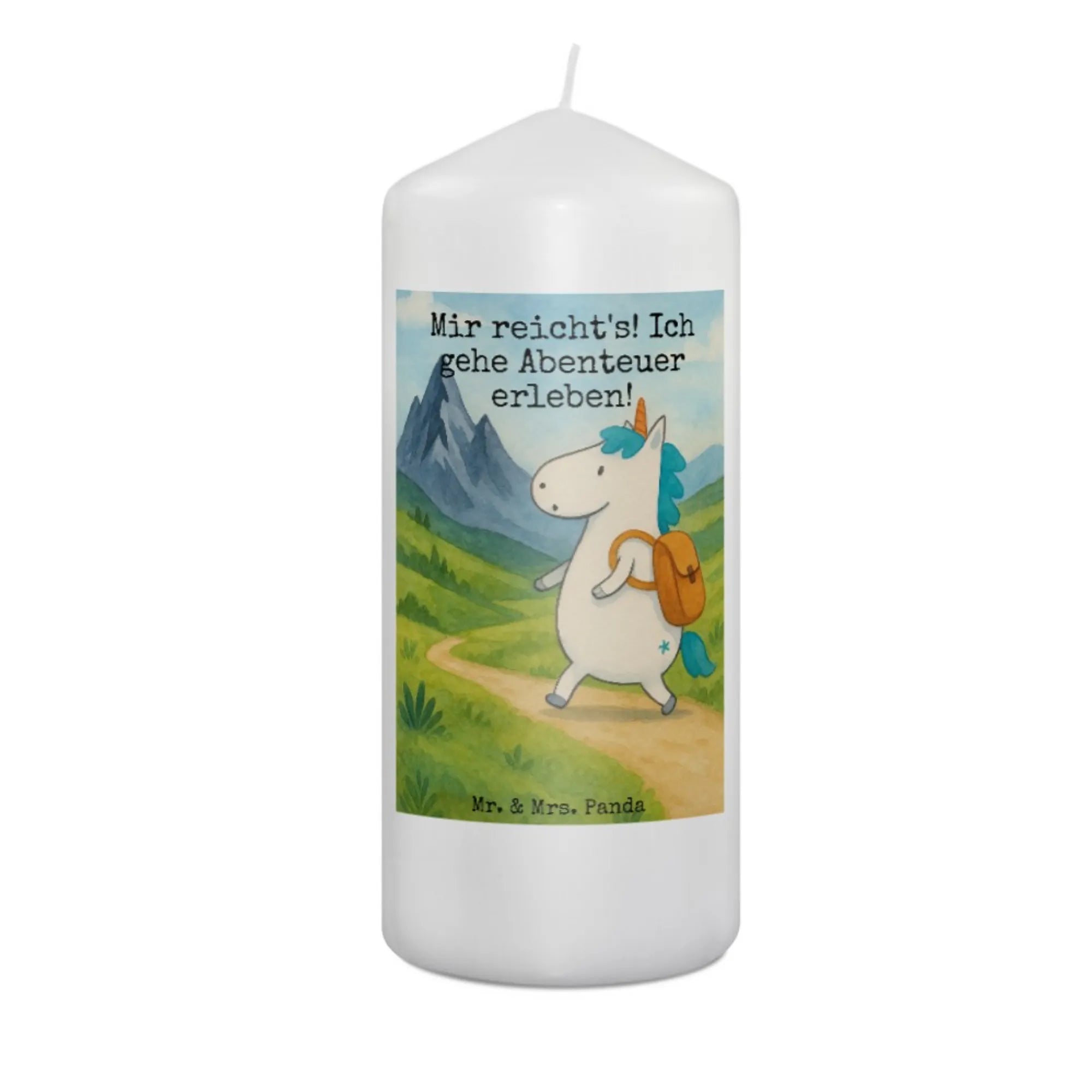 Kerze Einhorn Bergsteiger Design - 19 x 8 cm - mit Spruch