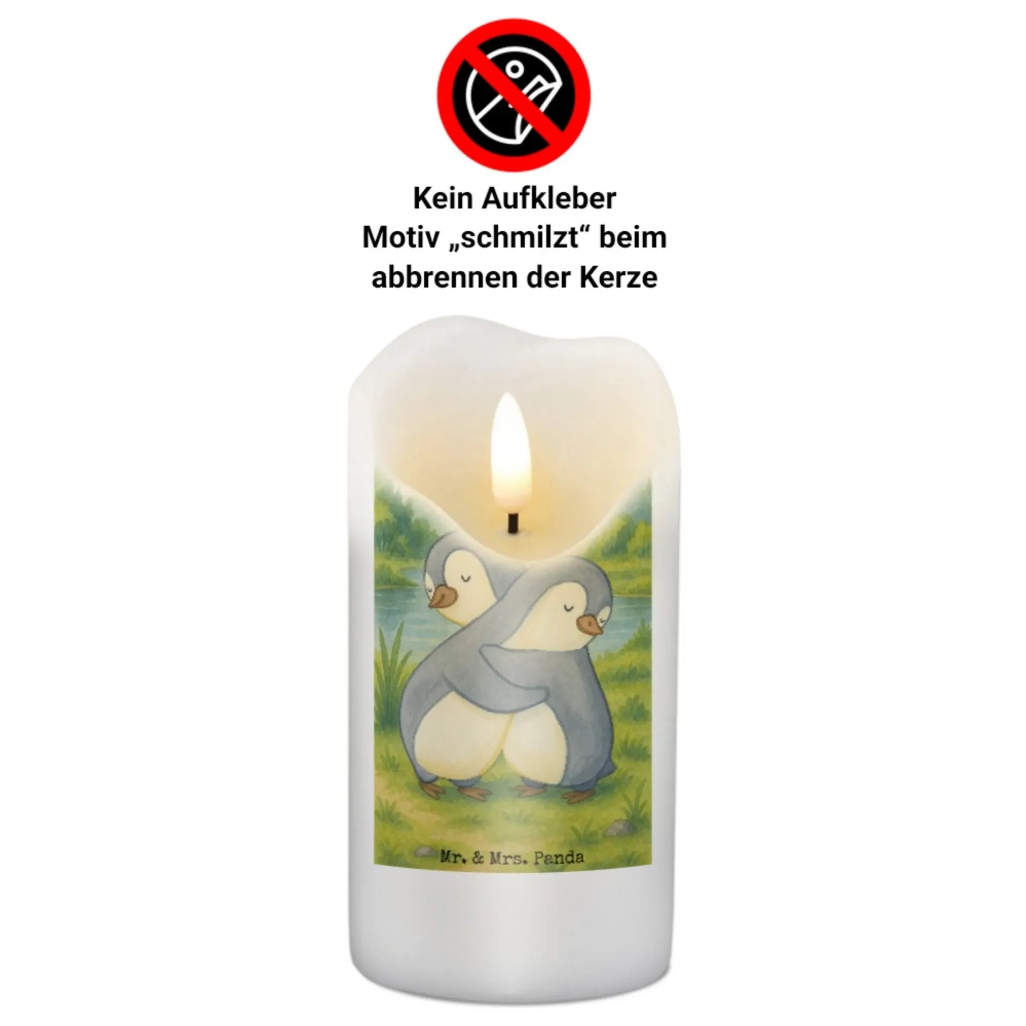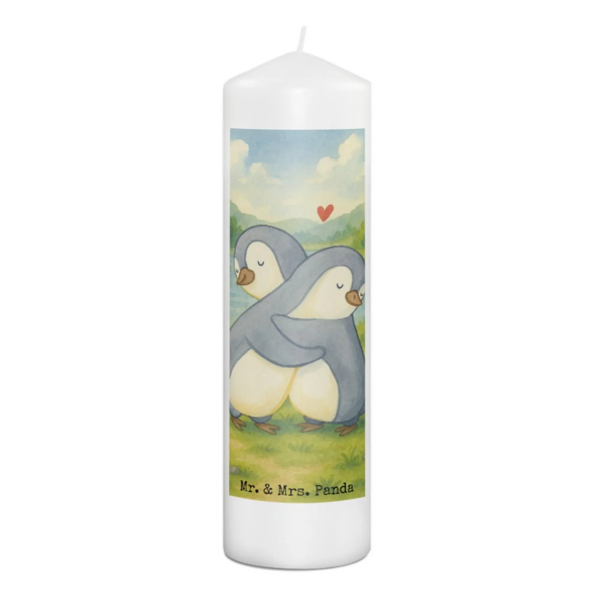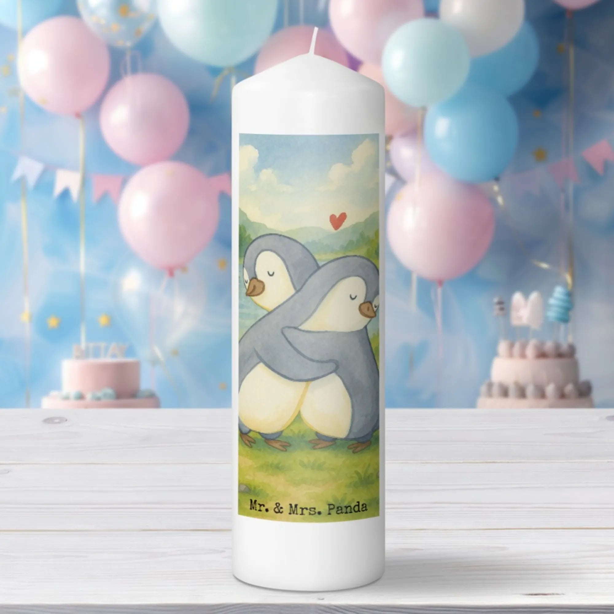 Kerze Pinguine Kuscheln Design - 15 x 7 cm - mit Spruch