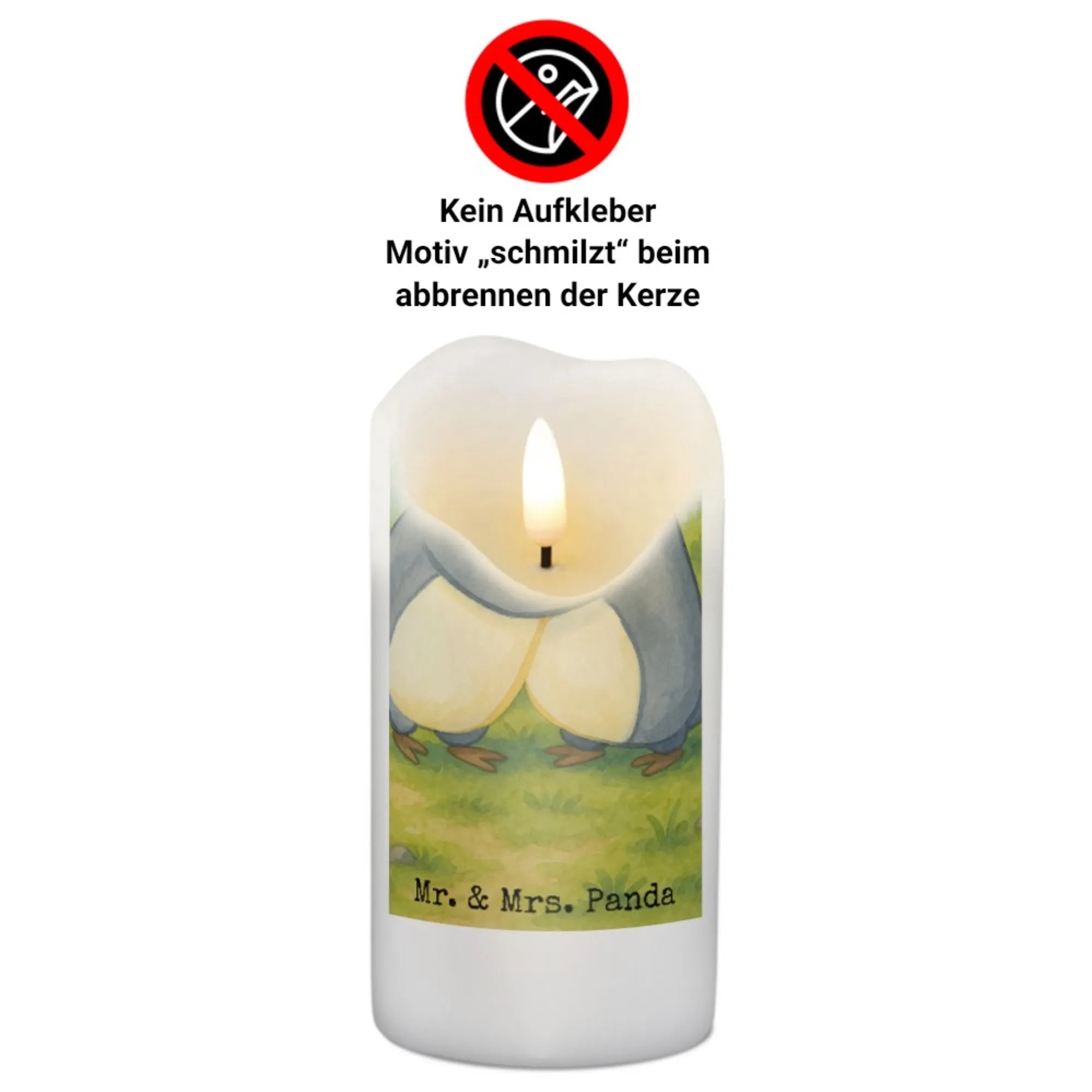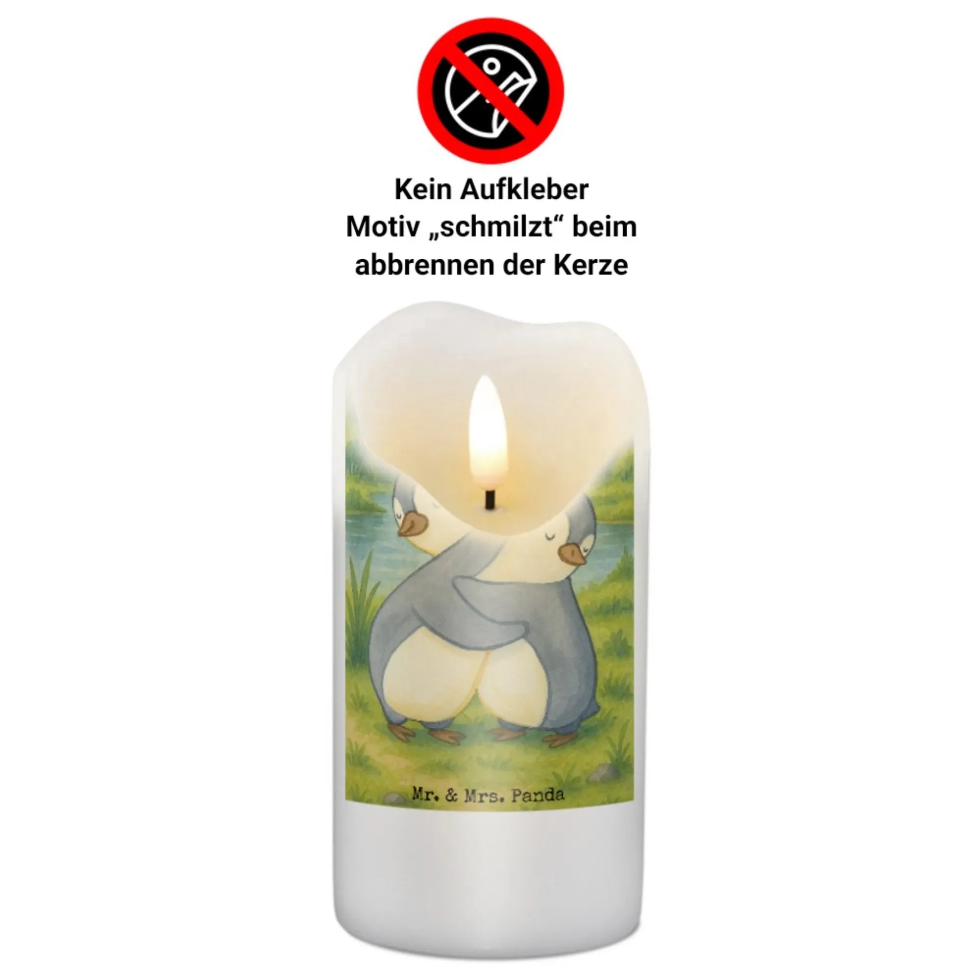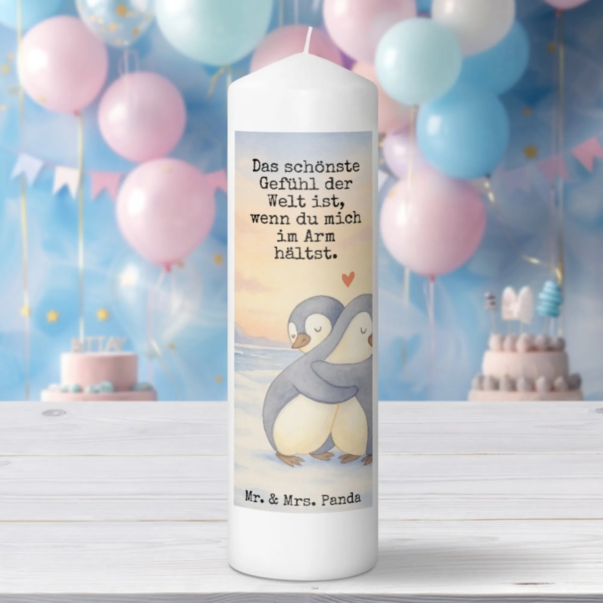 Kerze Pinguine Kuscheln Design - 15 x 7 cm - mit Spruch