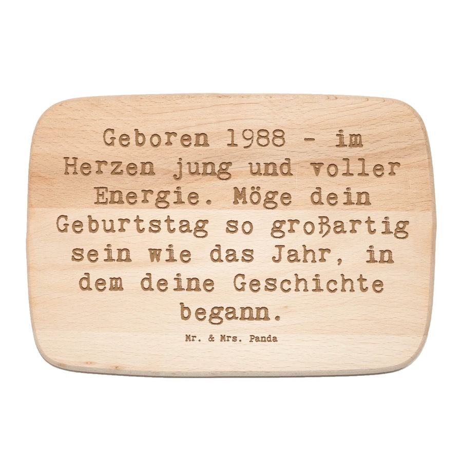 Du suchst nach dem perfekten Geschenk für einen besonderen Menschen, der 1988 geboren wurde? Unser einzigartiges Frühstücksbrett von Mr. & Mrs. Panda ist genau das, was du brauchst. Mit liebevoller Lasergravur und dem Spruch "Geboren 1988 - im Herzen jung und voller Energie. Möge dein Geburtstag so großartig sein wie das Jahr, in dem deine Geschichte begann." bringt dieses Frühstücksbrett nicht nur Freude beim Frühstück, sondern auch bei jedem Geburtstagsfest.