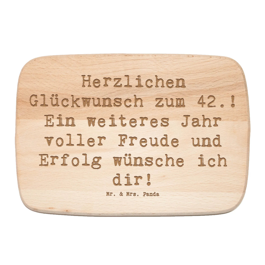Das Frühstücksbrett zum 42. Geburtstag von Mr. & Mrs. Panda ist das perfekte Geschenk für all jene, die diesen besonderen Ehrentag gebührend feiern wollen! Mit dem liebevollen Spruch „Herzlichen Glückwunsch zum 42.! Ein weiteres Jahr voller Freude und Erfolg wünsche ich dir!“ wird dieses elegante Frühstücksbrett aus robustem Birkenholz zu einem wertvollen Begleiter in der Küche und bei feierlichen Anlässen.