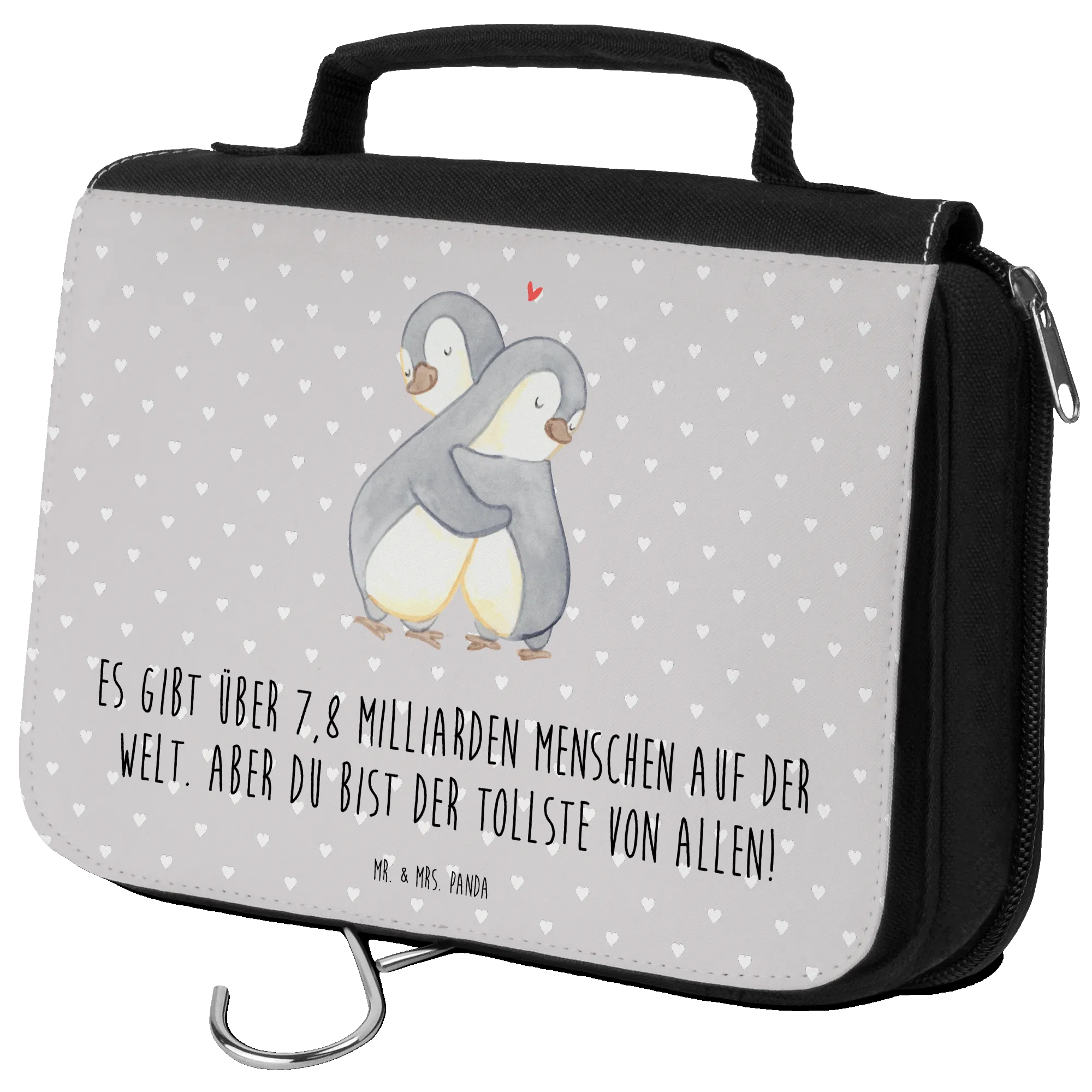 Suchst du nach dem perfekten Geschenk für deinen Partner oder deine Partnerin? Der Kulturbeutel "Pinguine Kuscheln" aus der Liebe Kollektion von Mr. & Mrs. Panda ist genau das Richtige!