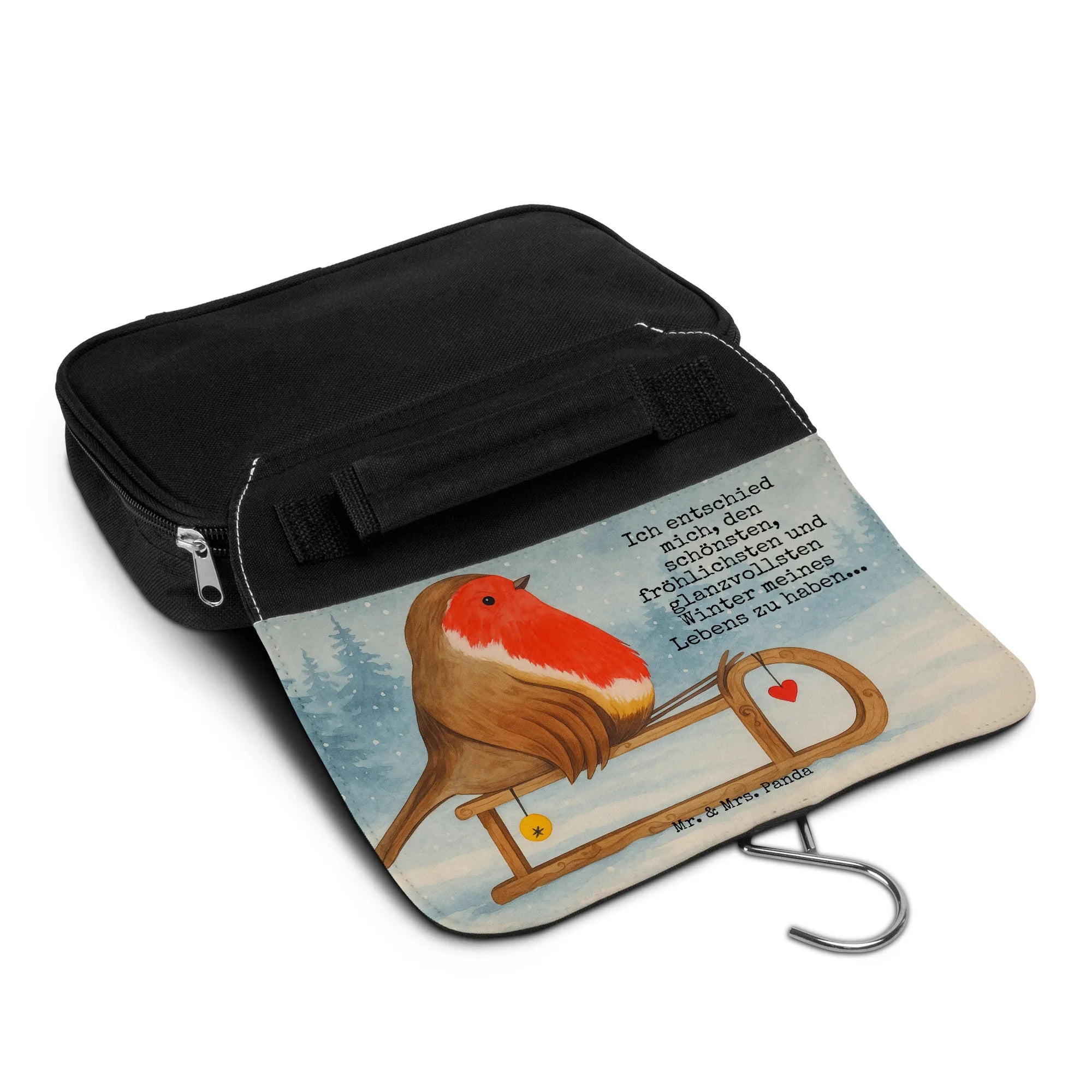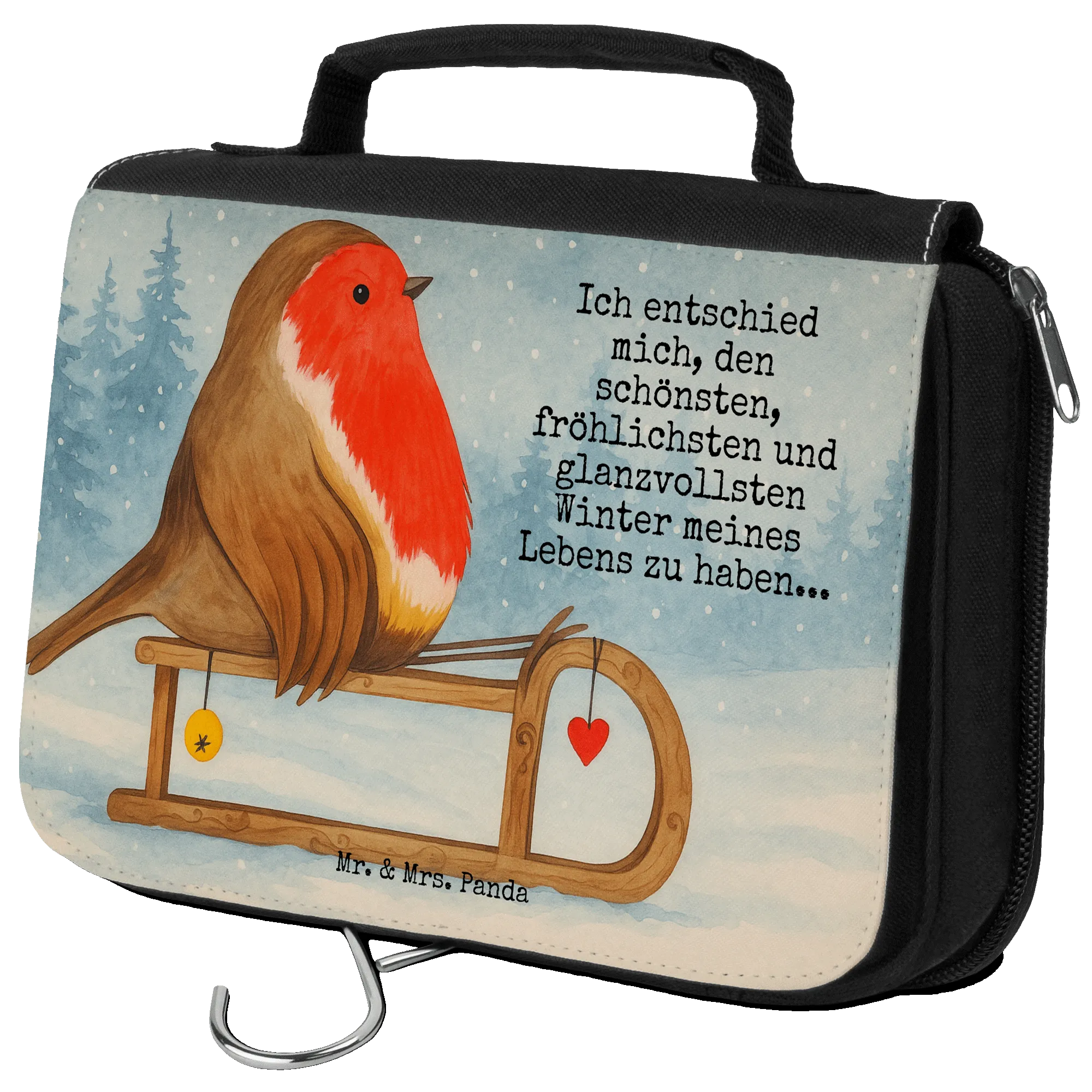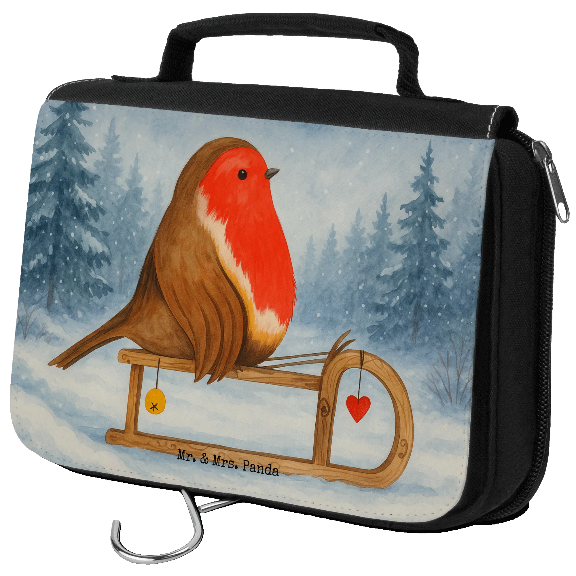 Kulturbeutel Rotkehlchen Schlitten Design – Mr. & Mrs. Panda