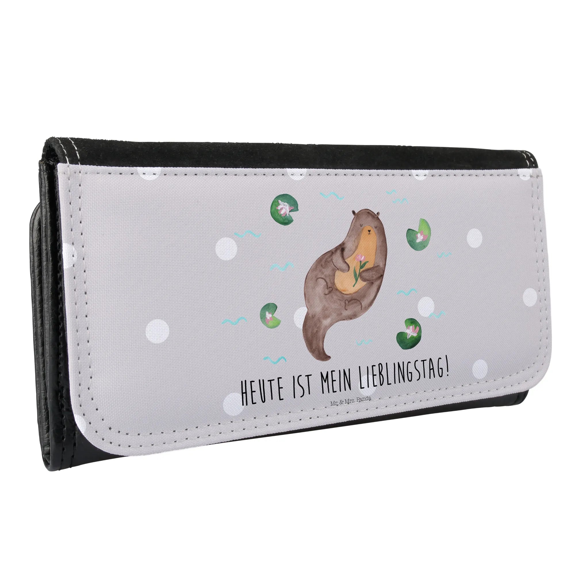 Ladies purse otter Water Lily - with a saying - Pastel Gray