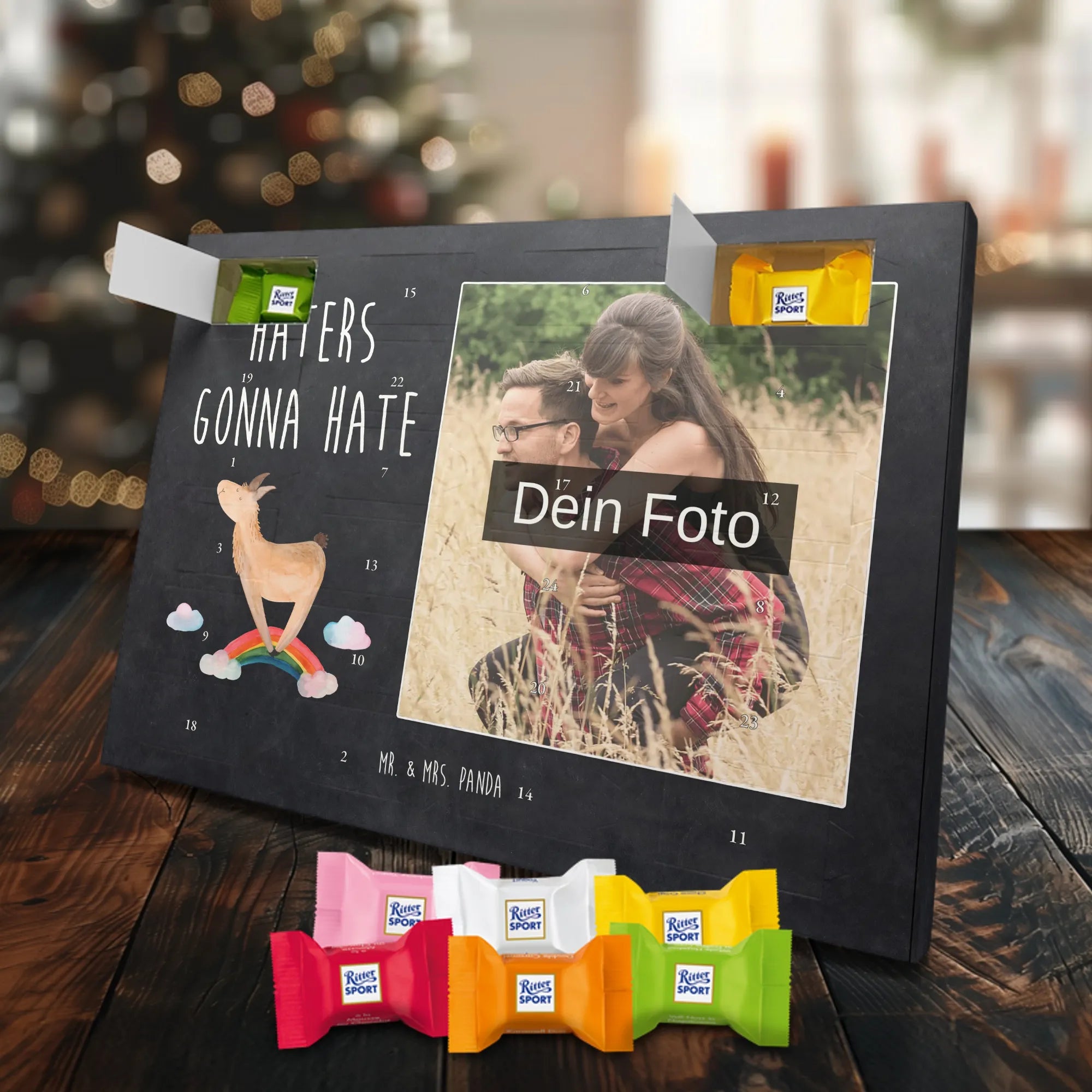 🐼 Ideales Foto-Geschenk: Personalisierter Schoko Foto Adventskalender mit Mr. & Mrs. Panda Sprüchen und deinem Bild.