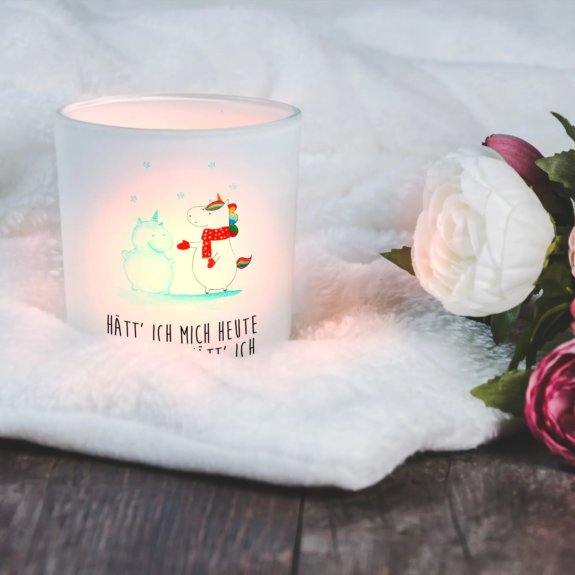 Imagine the soft glow of a flickering tealight illuminating the whimsical motif of a unicorn joyfully building a snowman, perfect for cozy winter evenings. It's an adorable reminder of the joy found in the simplest of moments – like making memories in the snow!