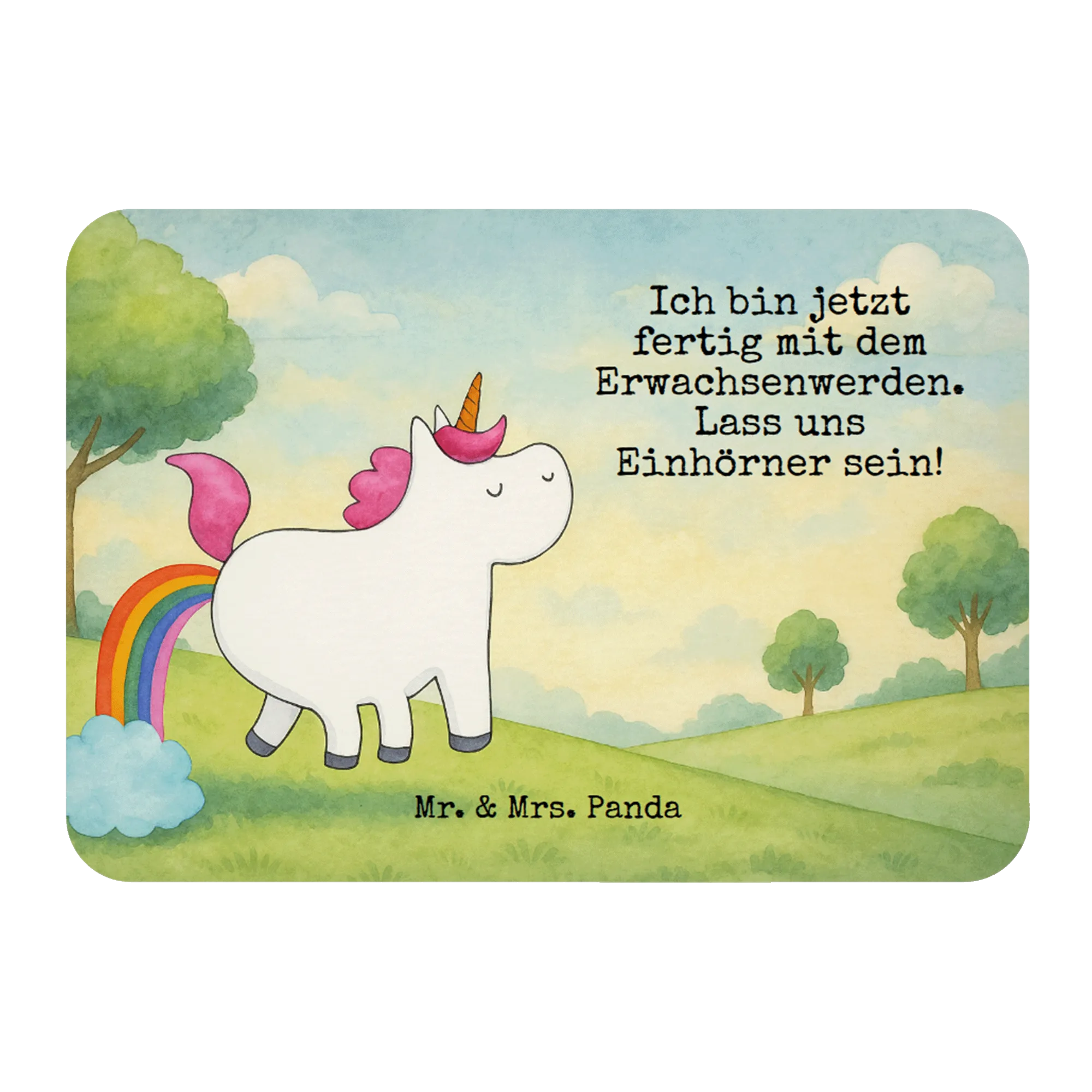 Triff unser zauberhaftes Einhorn, das entspannt mit einem Regenbogenpups durch die Lüfte schwebt. Es ermutigt uns, all das Ernsthafte hinter uns zu lassen und uns auf die Aussicht der Freude zu konzentrieren! "Ich bin jetzt fertig mit dem Erwachsenwerden. Lass uns Einhörner sein!" – dieser spritzige Spruch bringt uns dazu, uns an die kreativen und lebendigen Momente zu erinnern, die das Leben ausmachen. Lasst uns diese magischen Erinnerungen annehmen und uns das Recht geben, Spaß zu haben, wo auch immer wir sind. Mit einem Hauch von Glitzer und einer Portion Humor wird unser Leben bunter. Lass uns gemeinsam brillante Momente kreieren und die Dinge leicht nehmen. Wir haben die Kraft, wie ein Einhorn zu lächeln und in eine Welt voller Wunder einzutauchen!