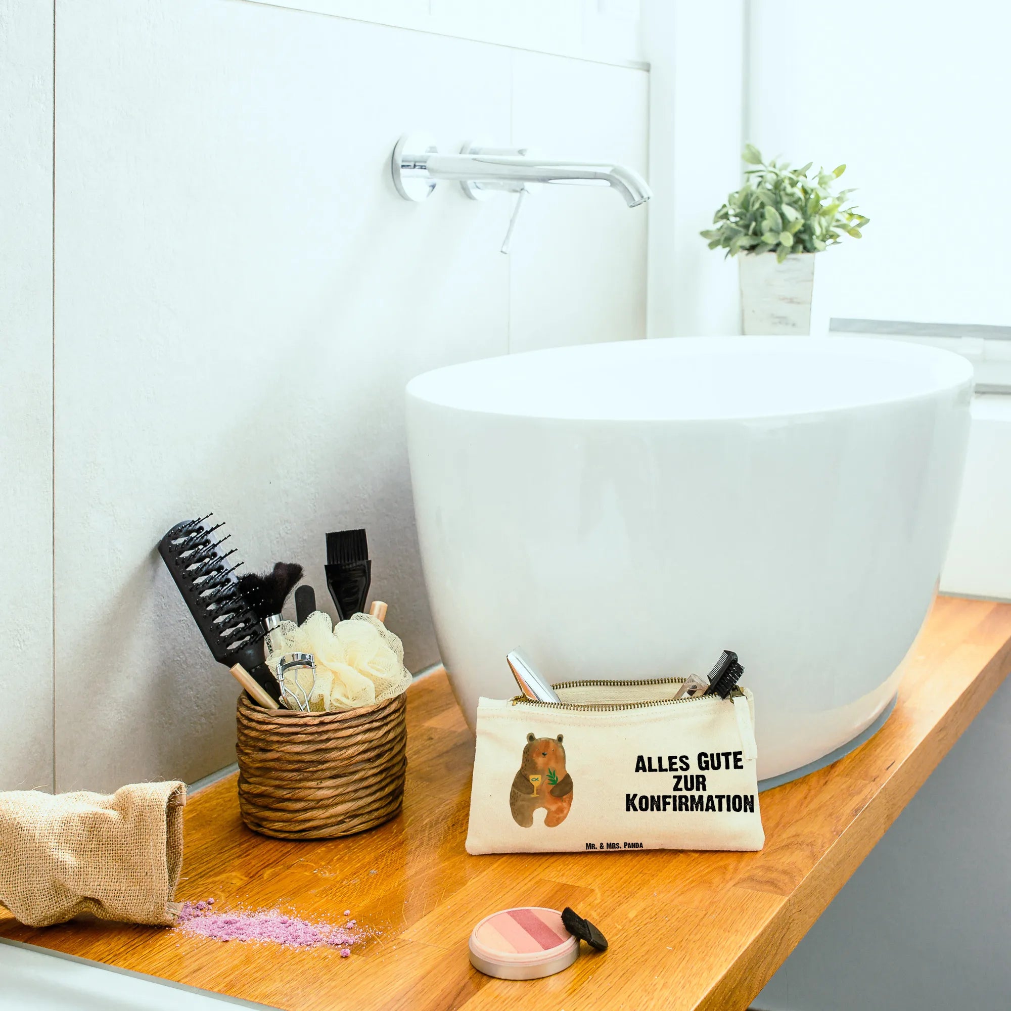 Make-up bag bear confirmation - Grösse XL Große - with a saying