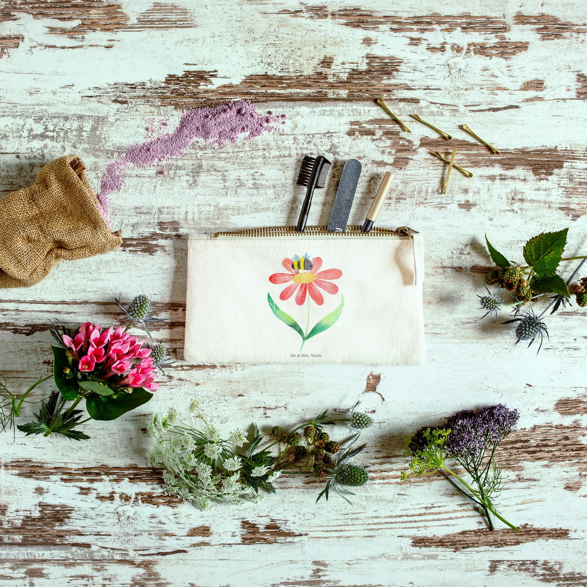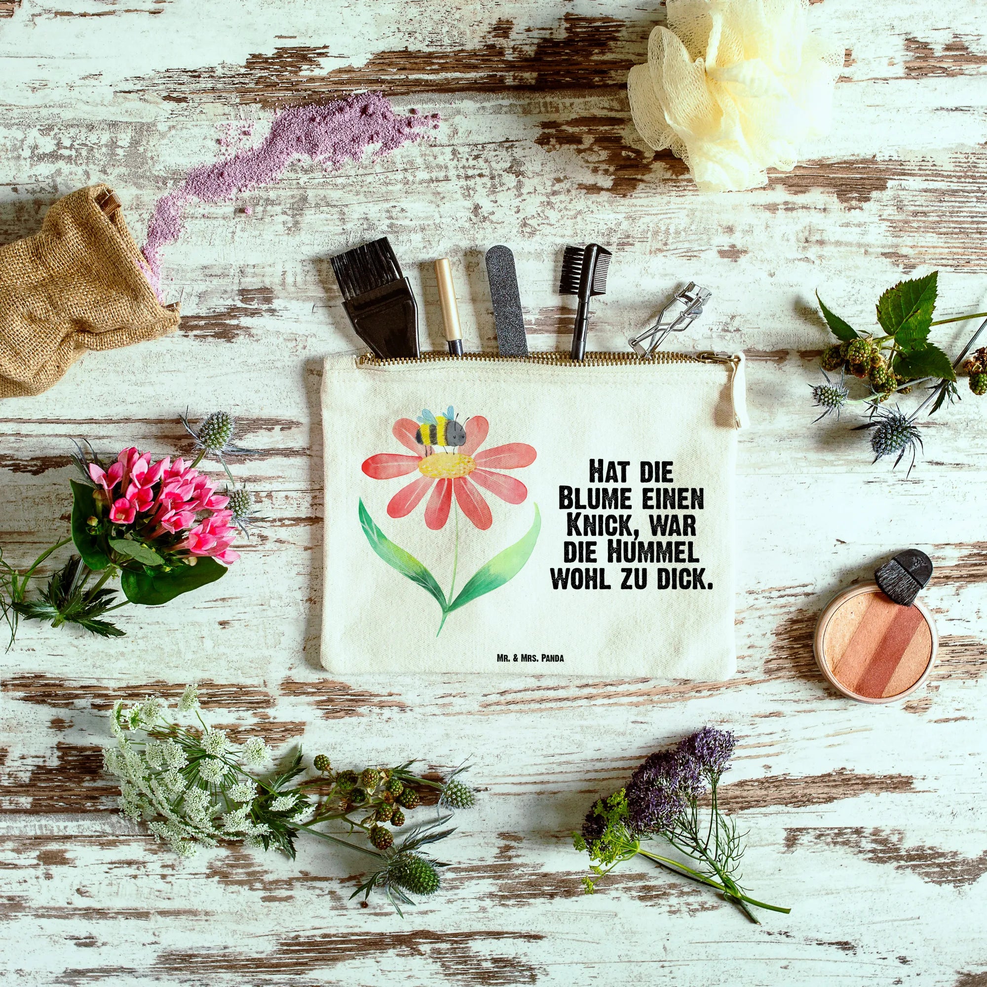 Make-up bag bumblebee flower - Size XL Large - with a saying