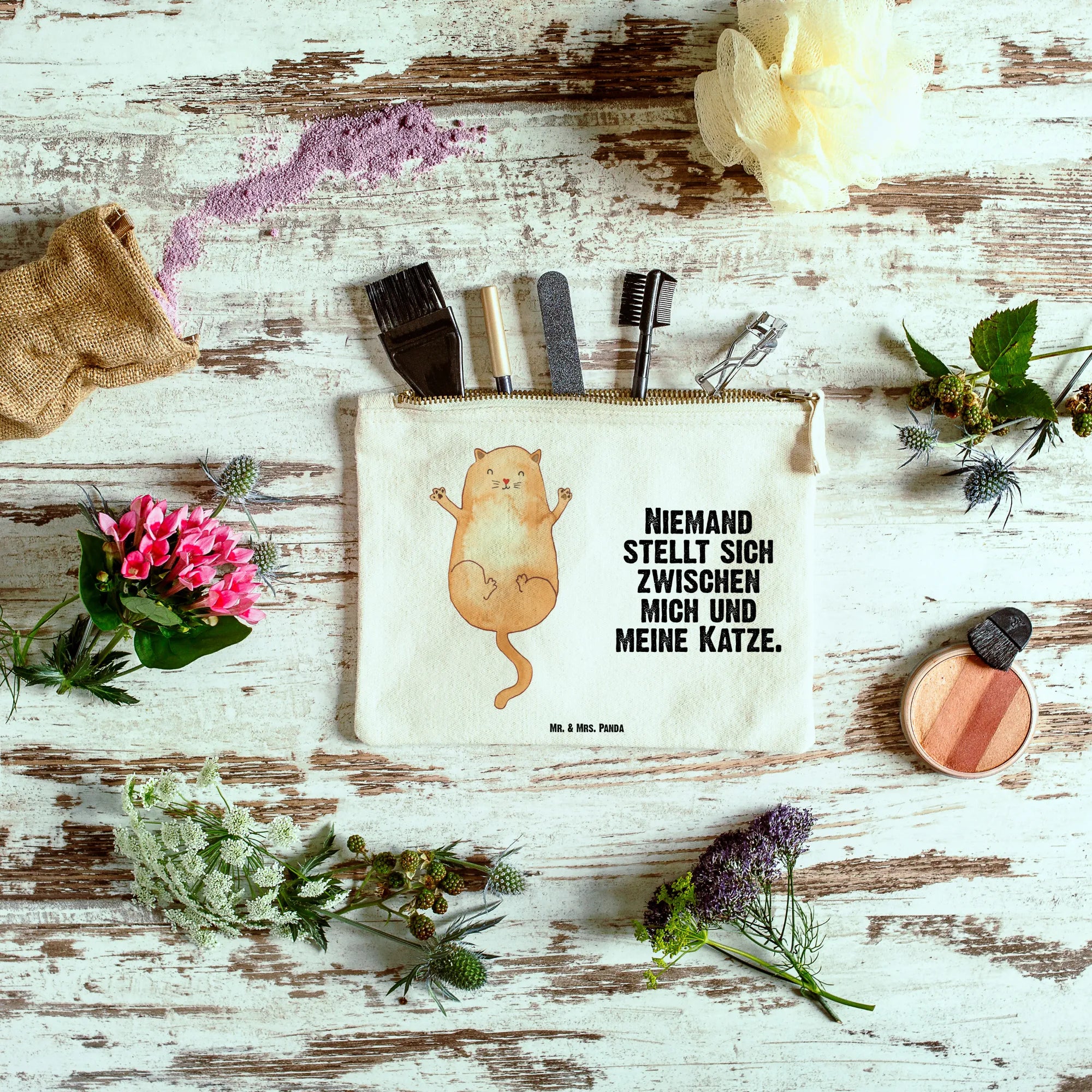 This charming make-up bag by Mr. & Mrs. Panda is the ideal companion for all your cosmetic essentials. Crafted from 100% soft cotton, it features delightful designs and uplifting quotes that reflect your style. Measuring 25 cm x 18 cm, this bag is spacious enough to organize your makeup, skincare, or even stationery! The unique inner seams make it structured and durable, perfect for daily use. Whether you're at home or on the go, it keeps everything neatly together. It's also great for storing receipts or as a pencil case. Treat yourself or gift a friend with this versatile, high-quality bag that’s easy to clean with a gentle hand wash.