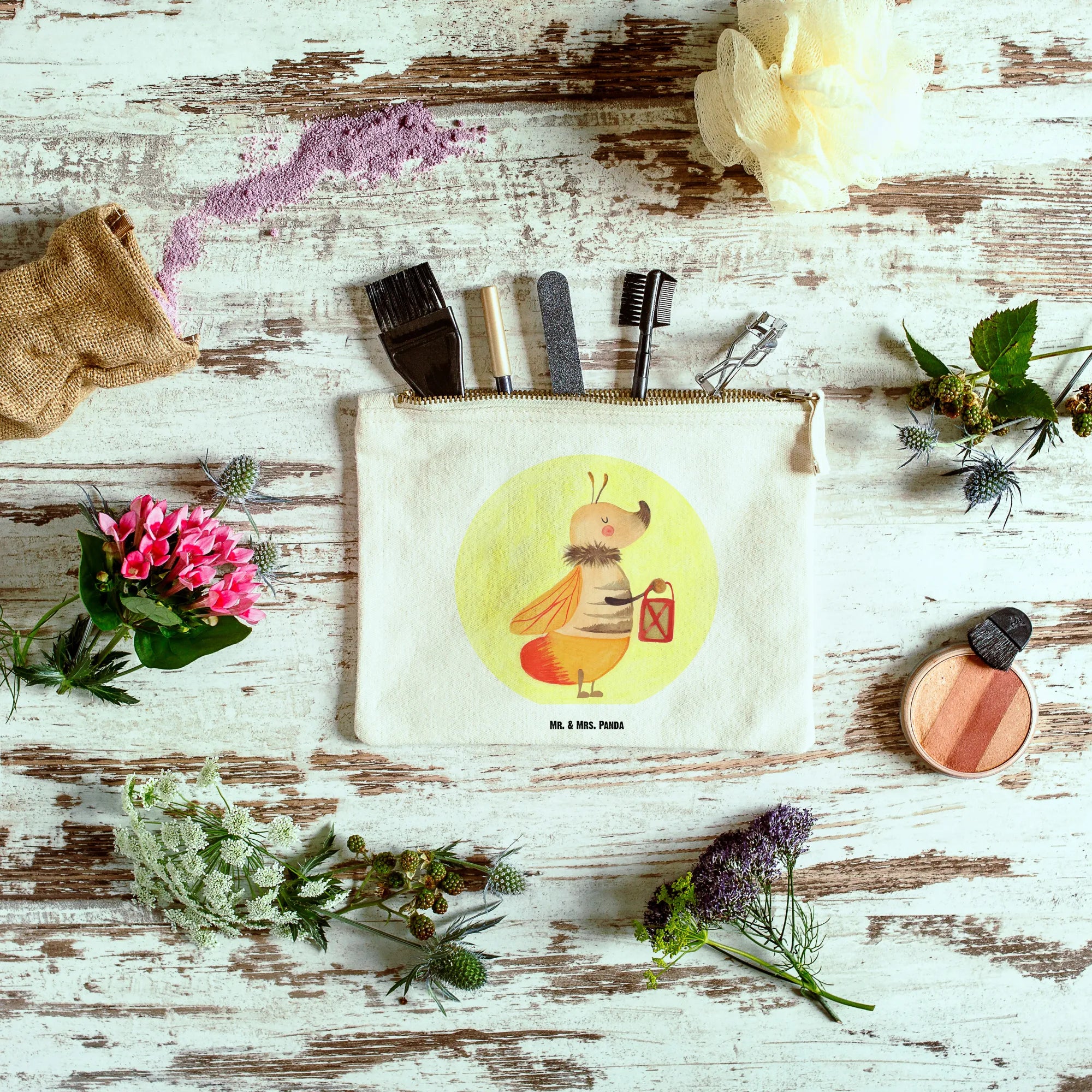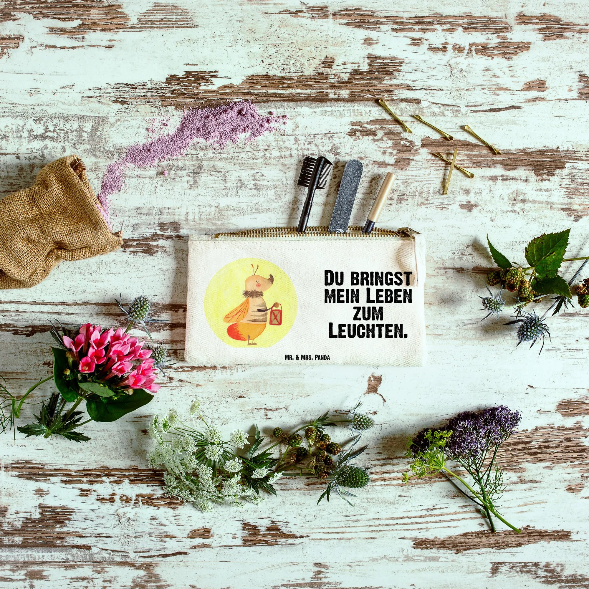 Add a sprinkle of joy to your day with Mr. & Mrs. Panda's fabulous make-up bag! Constructed from soft and durable 100% cotton, it's adorned with delightful motifs and cheerful quotes. It boasts a roomy size of 24 cm x 16 cm, making it perfect for keeping your make-up organized or even stashing miscellaneous items. Whether you're out on an adventure or just enjoying a cozy day at home, this bag is multi-purpose and stylish. Its carefully sewn inner seams ensure that it retains its shape for longer. Easy to maintain with hand washing! Make someone’s day special with this charming bag, perfect for gifting.