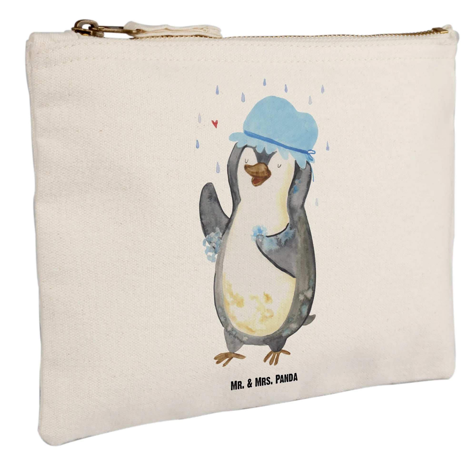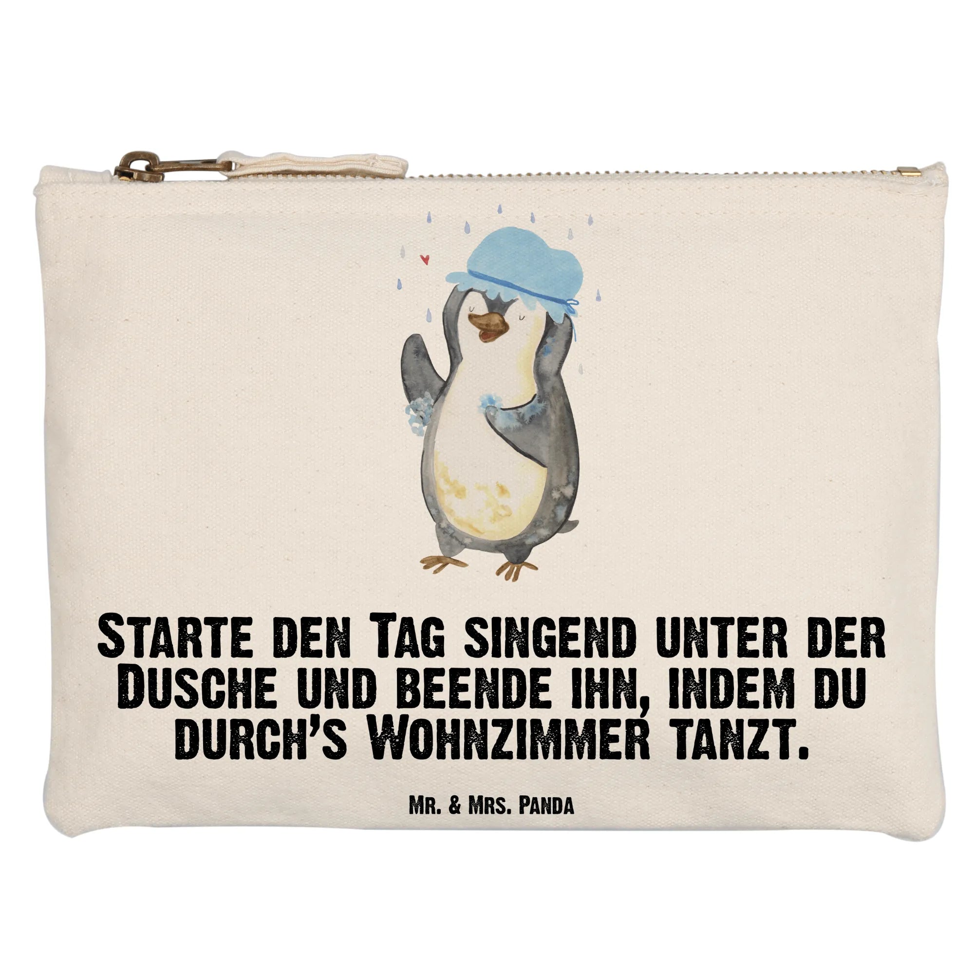 Make-up bag Penguin have a shower - Size XL Large - with a saying