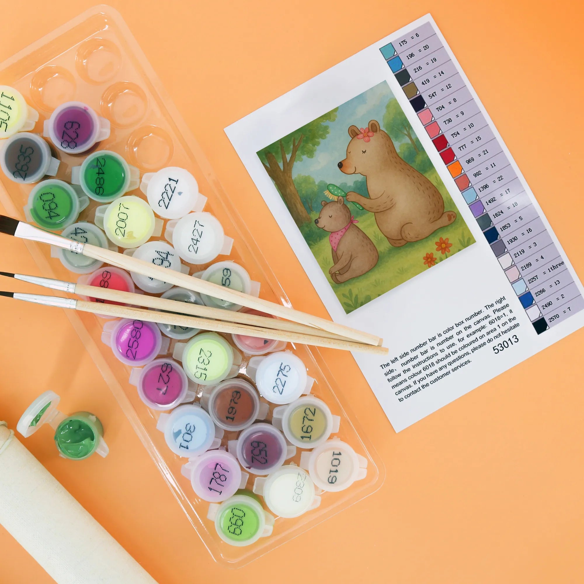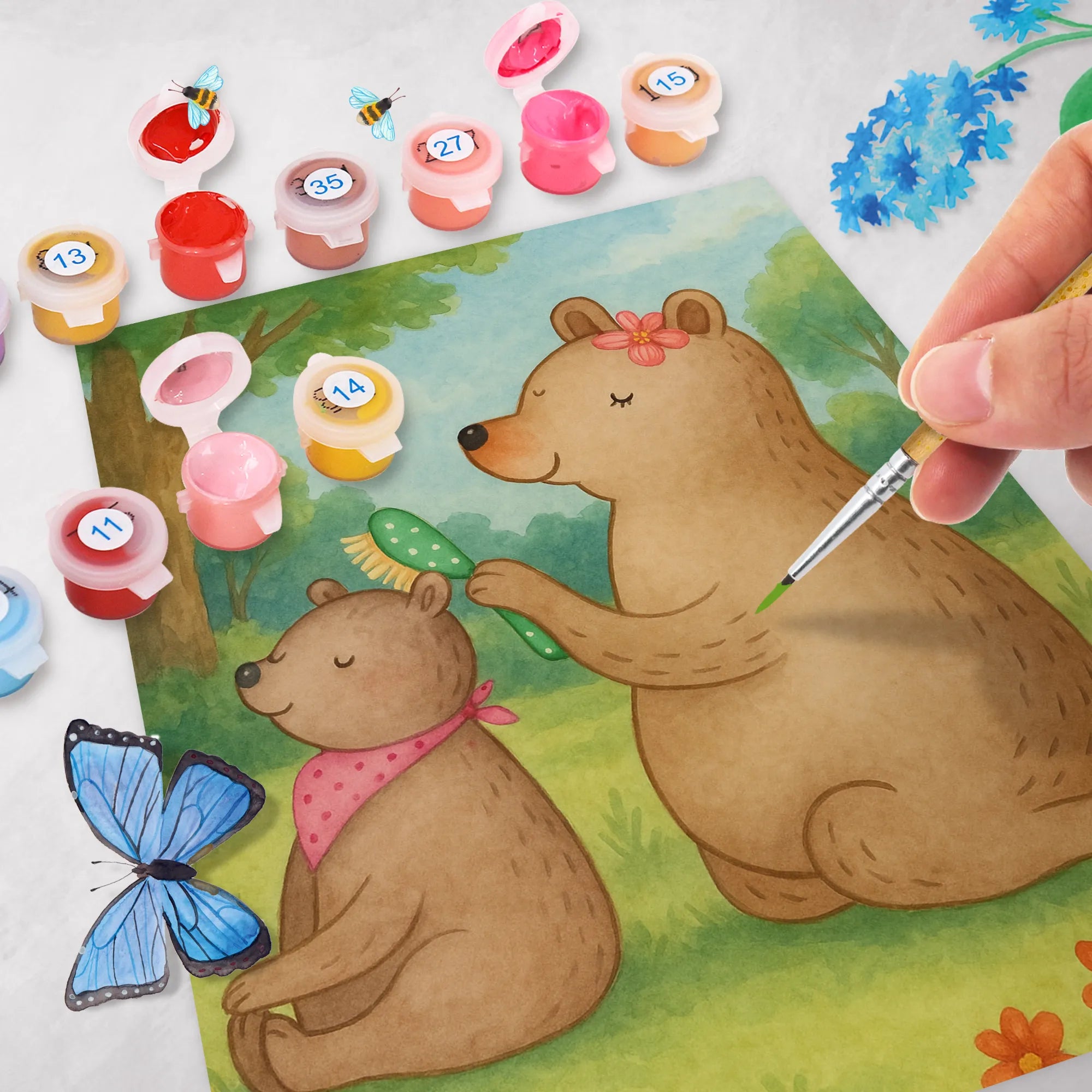 Malen nach Zahlen Bär Kind Design - Ohne Rahmen - 24 Farben (Standard)