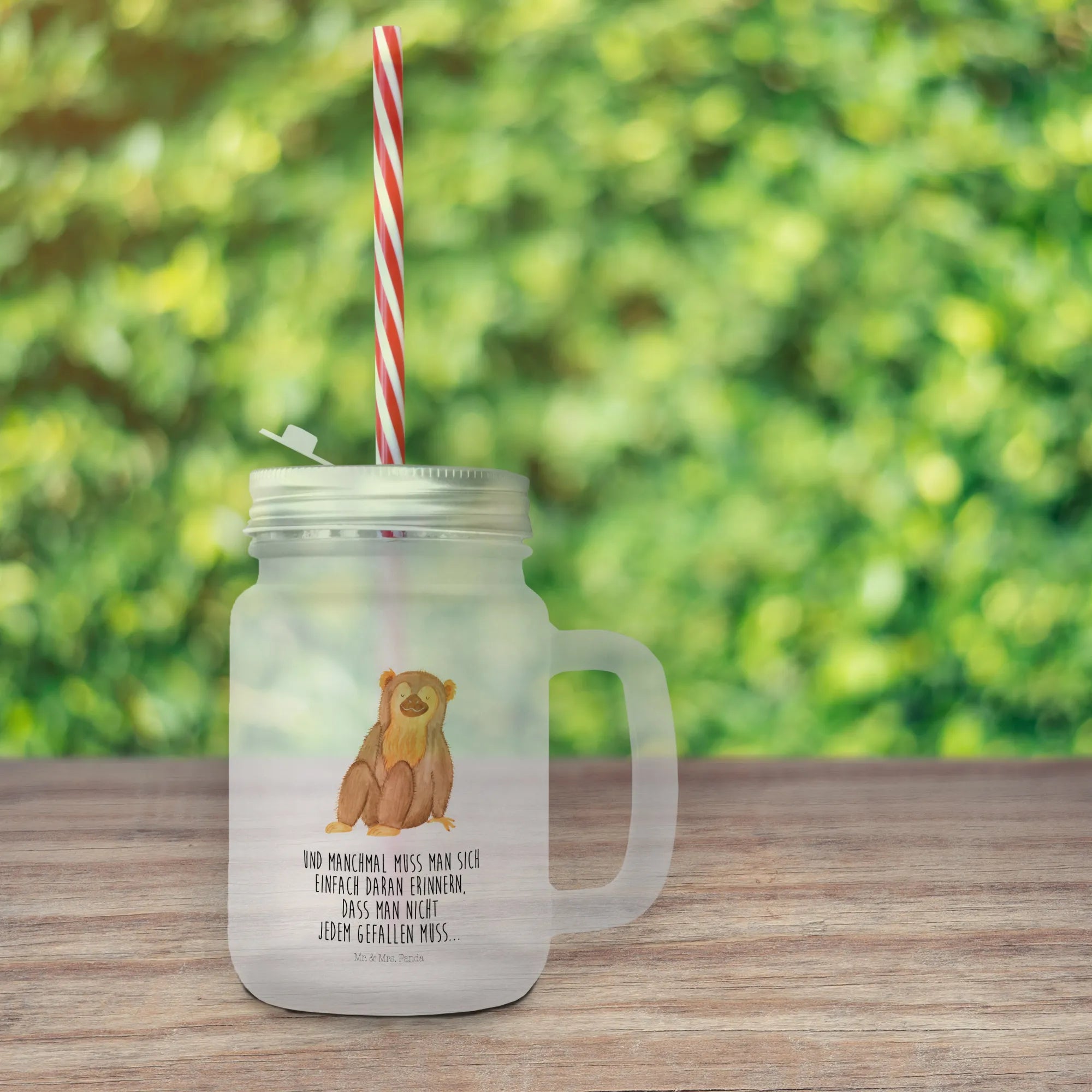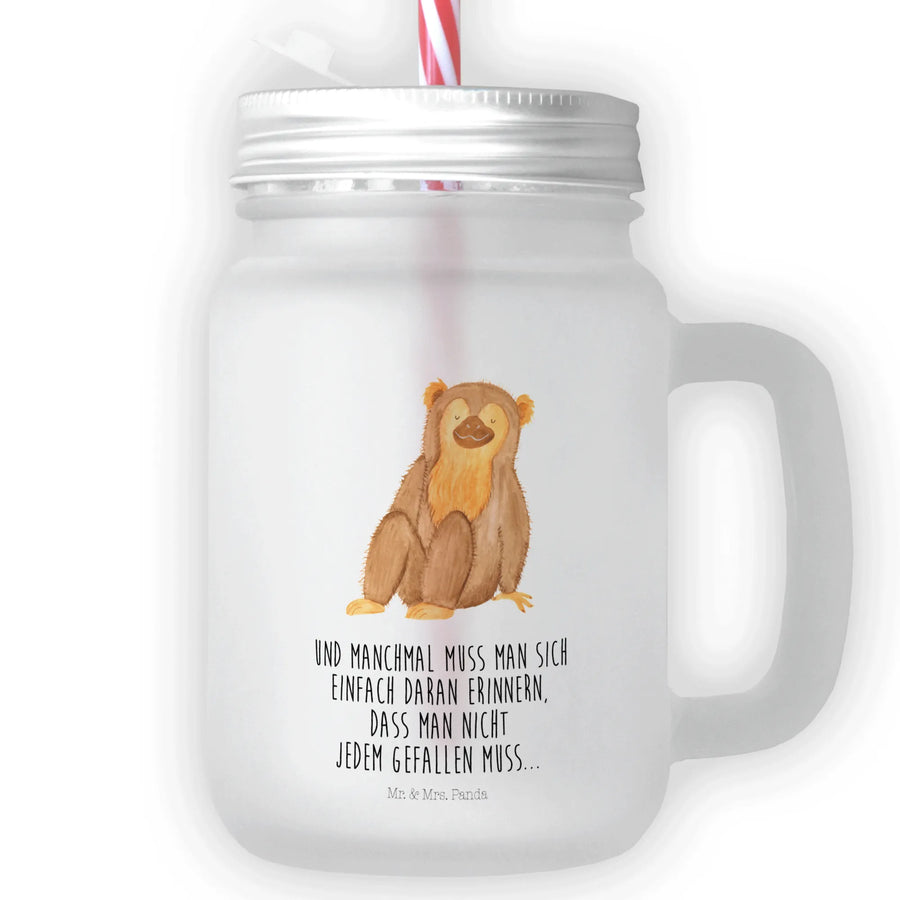 Mason jar drinking glass Monkey - with a saying