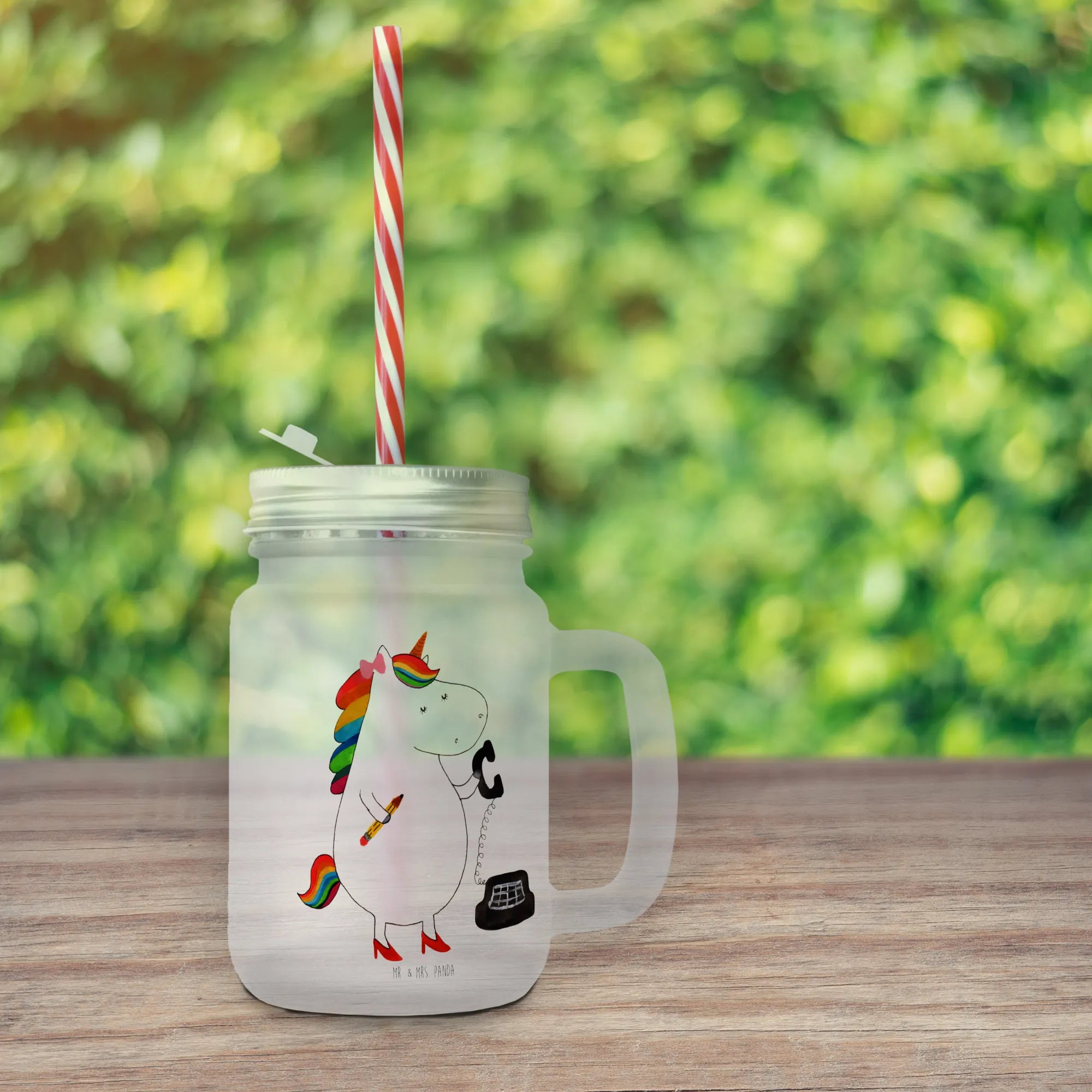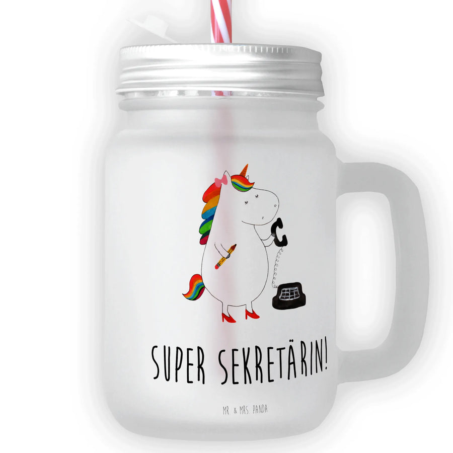 Introducing the charming Mason Jar Drinking Glass - Unicorn Secretary from the delightful Unicorn Collection by Mr. & Mrs. Panda! This beautifully designed glass is more than just a drinking vessel; it's a piece of art that will bring joy to every sip, making it the perfect gift for office workers, secretaries, and unicorn lovers alike.