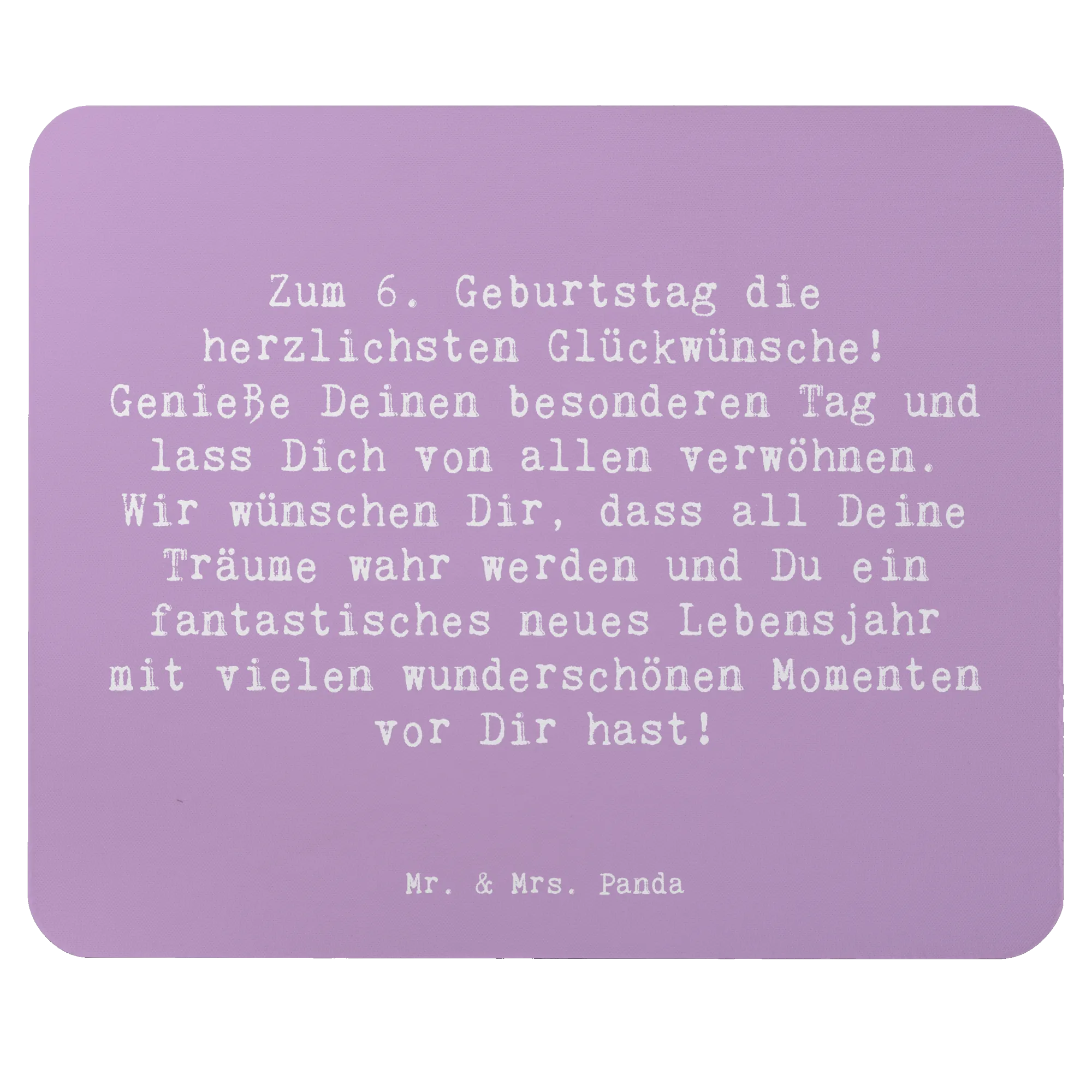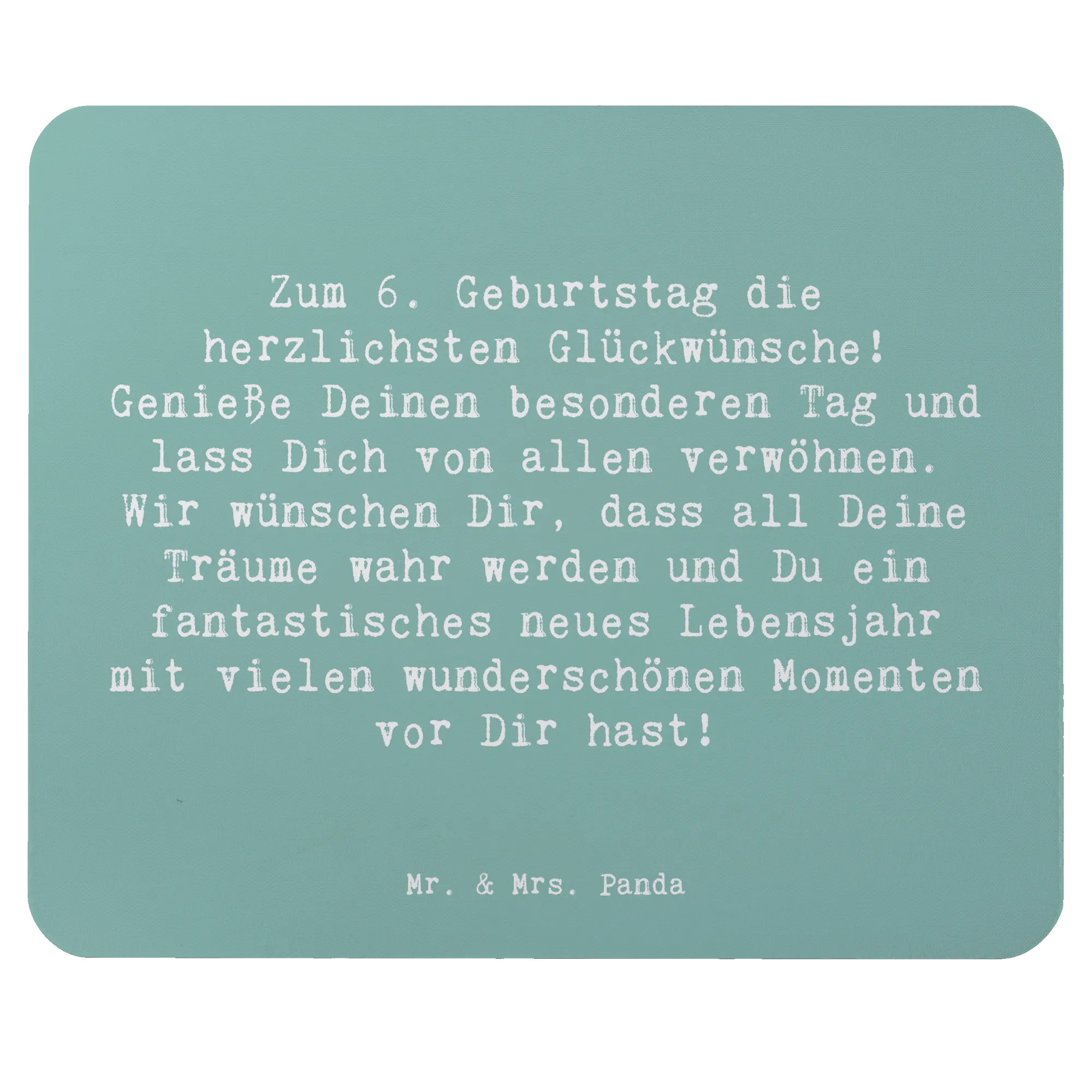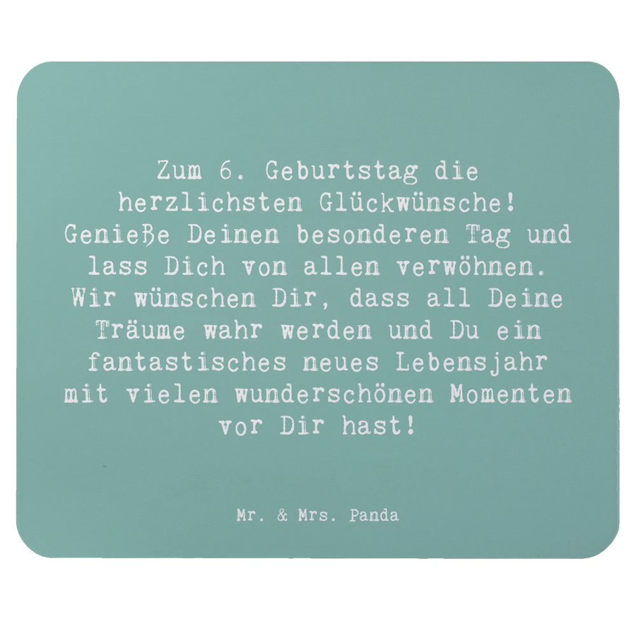 Bedruckt mit dem herzlichen Spruch: "Zum 6. Geburtstag die herzlichsten Glückwünsche! Genieße Deinen besonderen Tag und lass Dich von allen verwöhnen. Wir wünschen Dir, dass all Deine Träume wahr werden und Du ein fantastisches neues Lebensjahr mit vielen wunderschönen Momenten vor Dir hast!", ist dieses Mauspad eine wunderbare Möglichkeit, um Glückwünsche kreativ zu übermitteln.