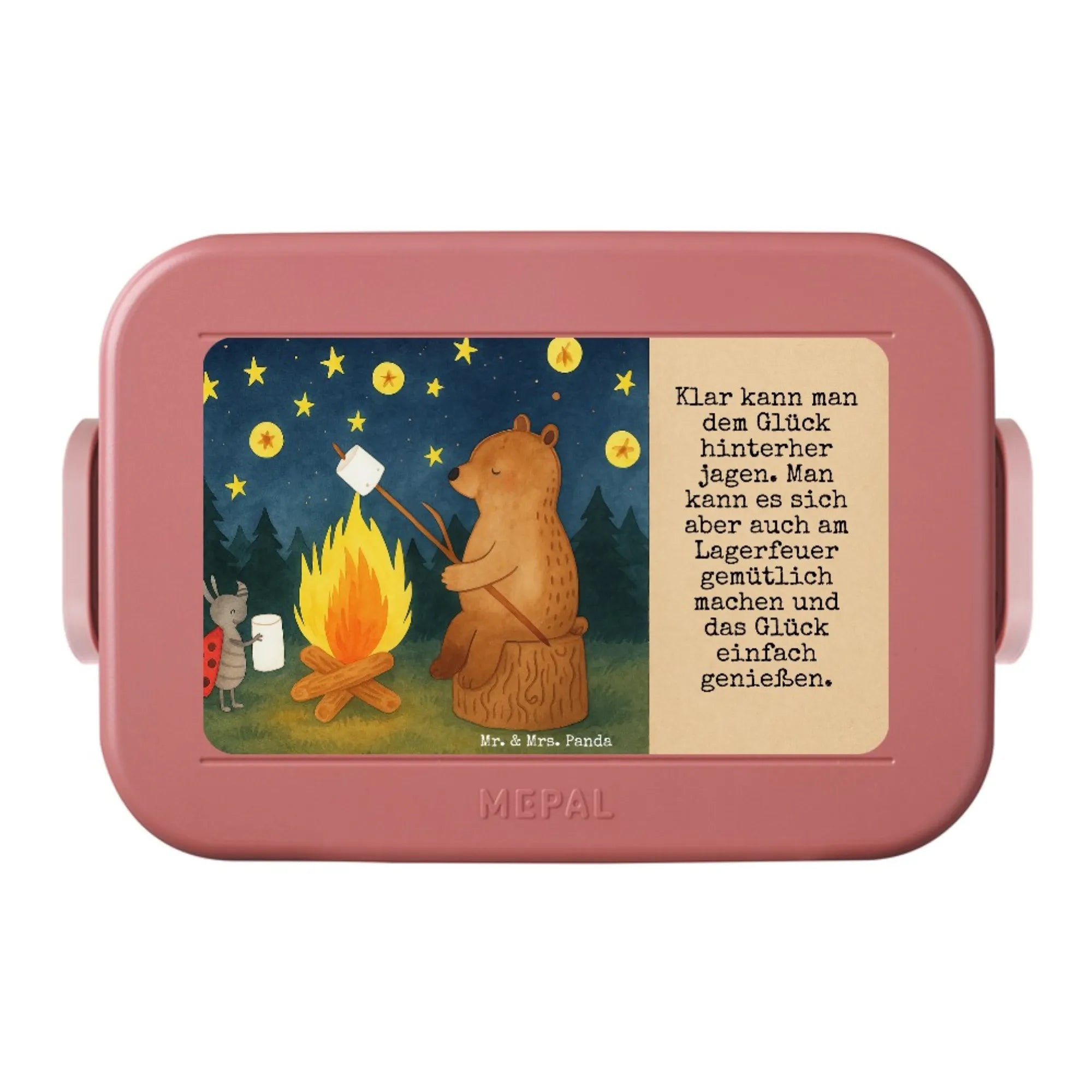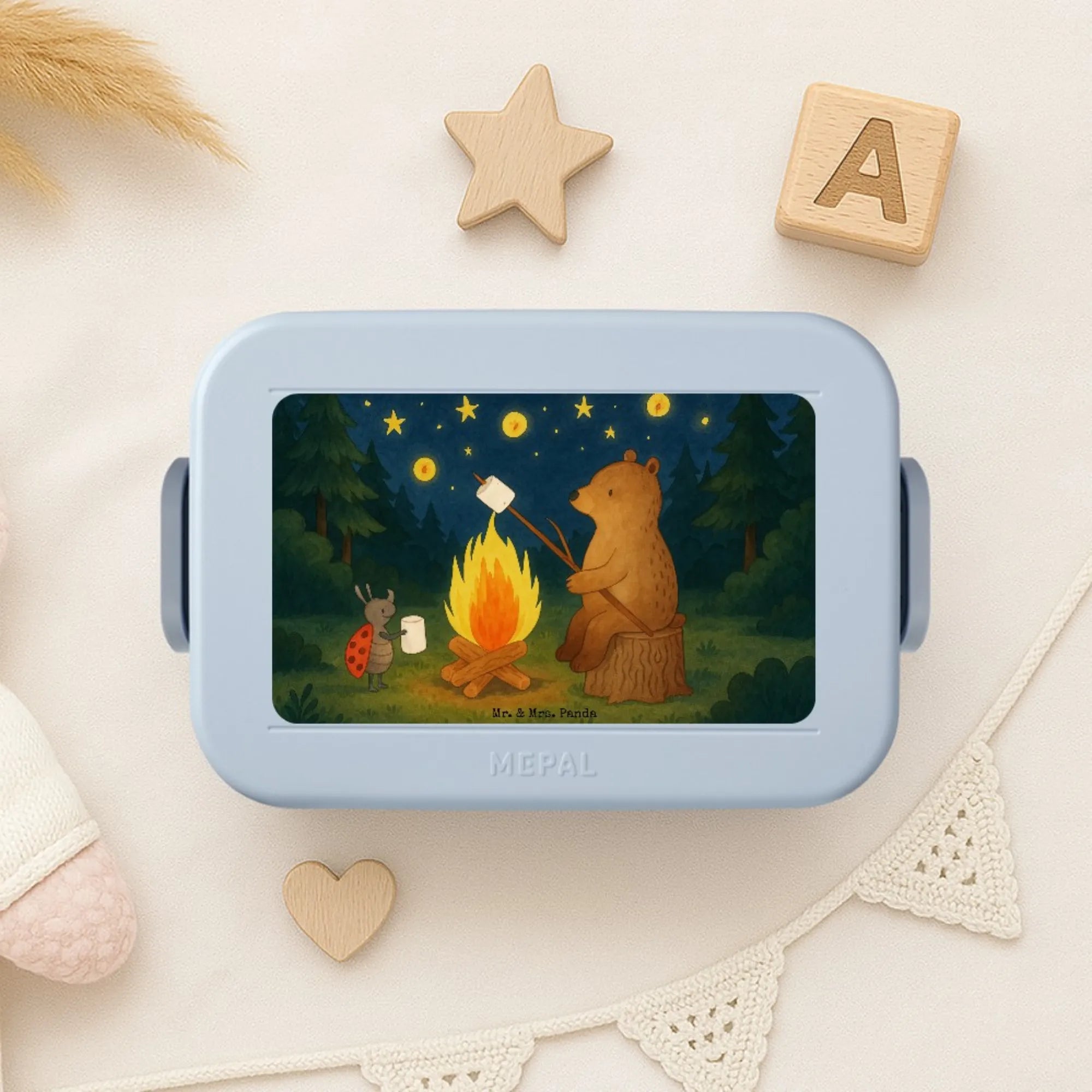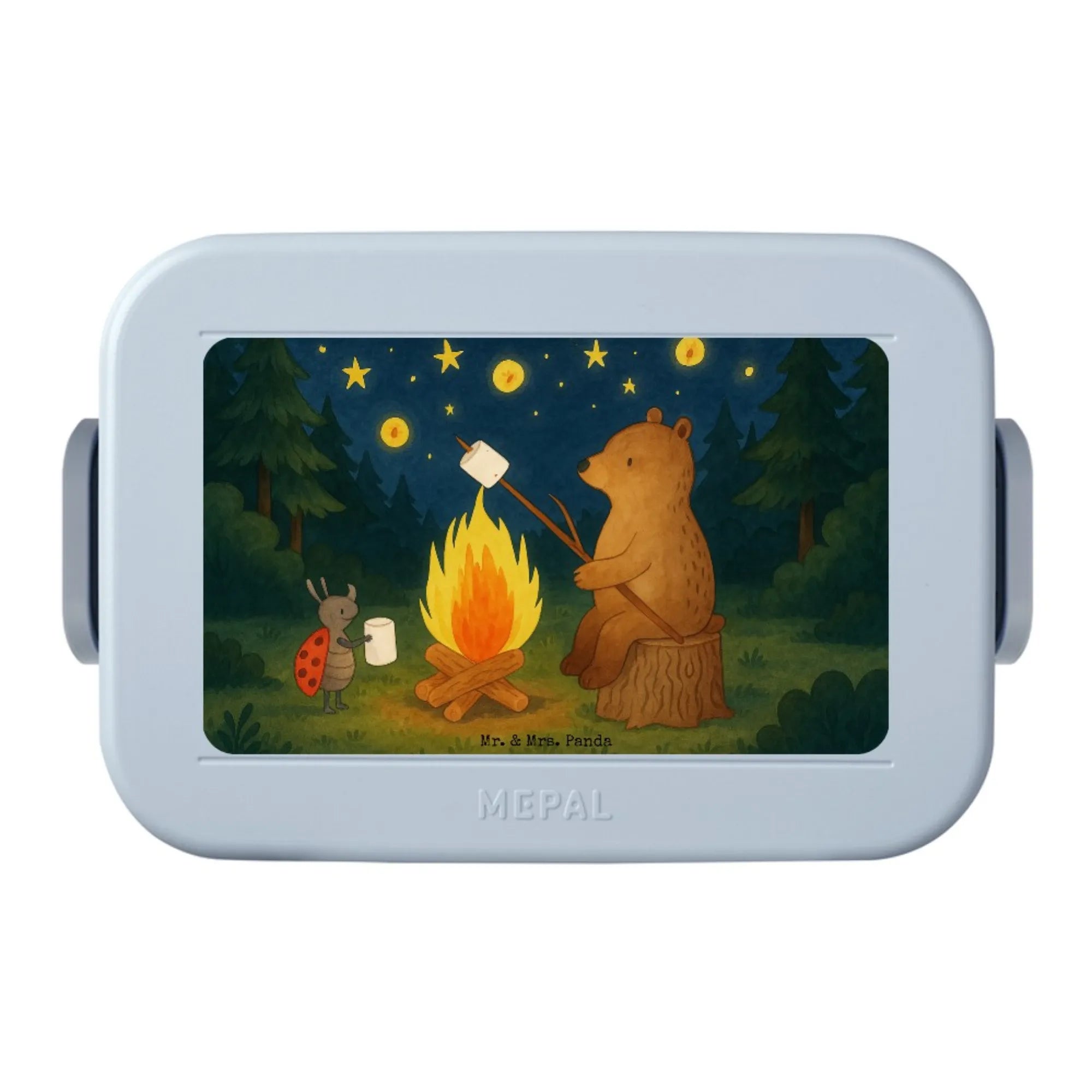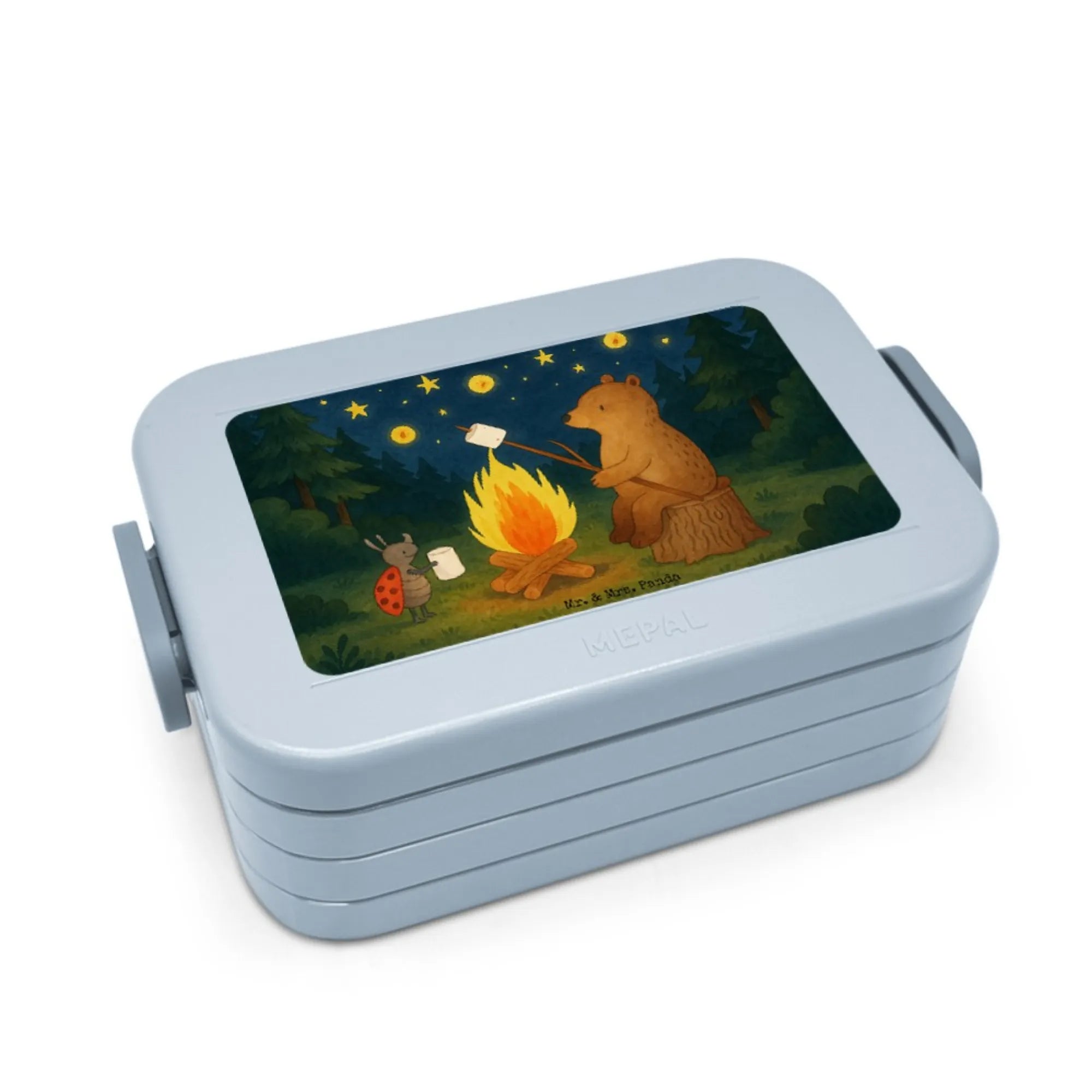 MEPAL Bentobox Bär & Marienkäfer Lagerfeuer Design - mit Spruch - Blau Pastell