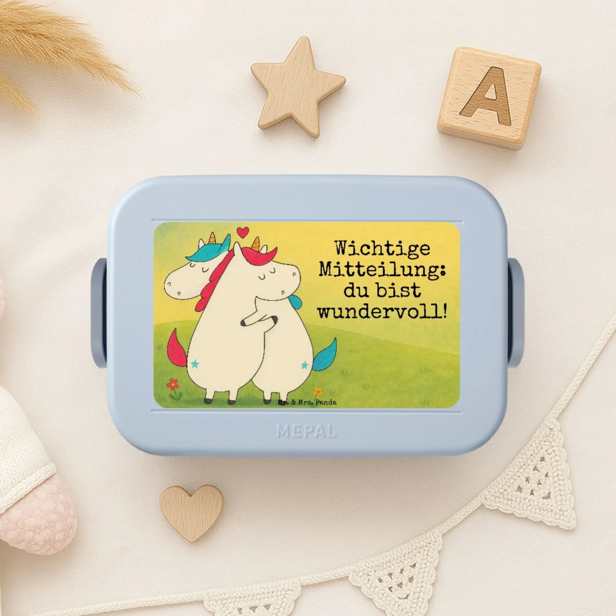 MEPAL Bentobox Einhorn Mitteilung Design - mit Spruch - Blau Pastell