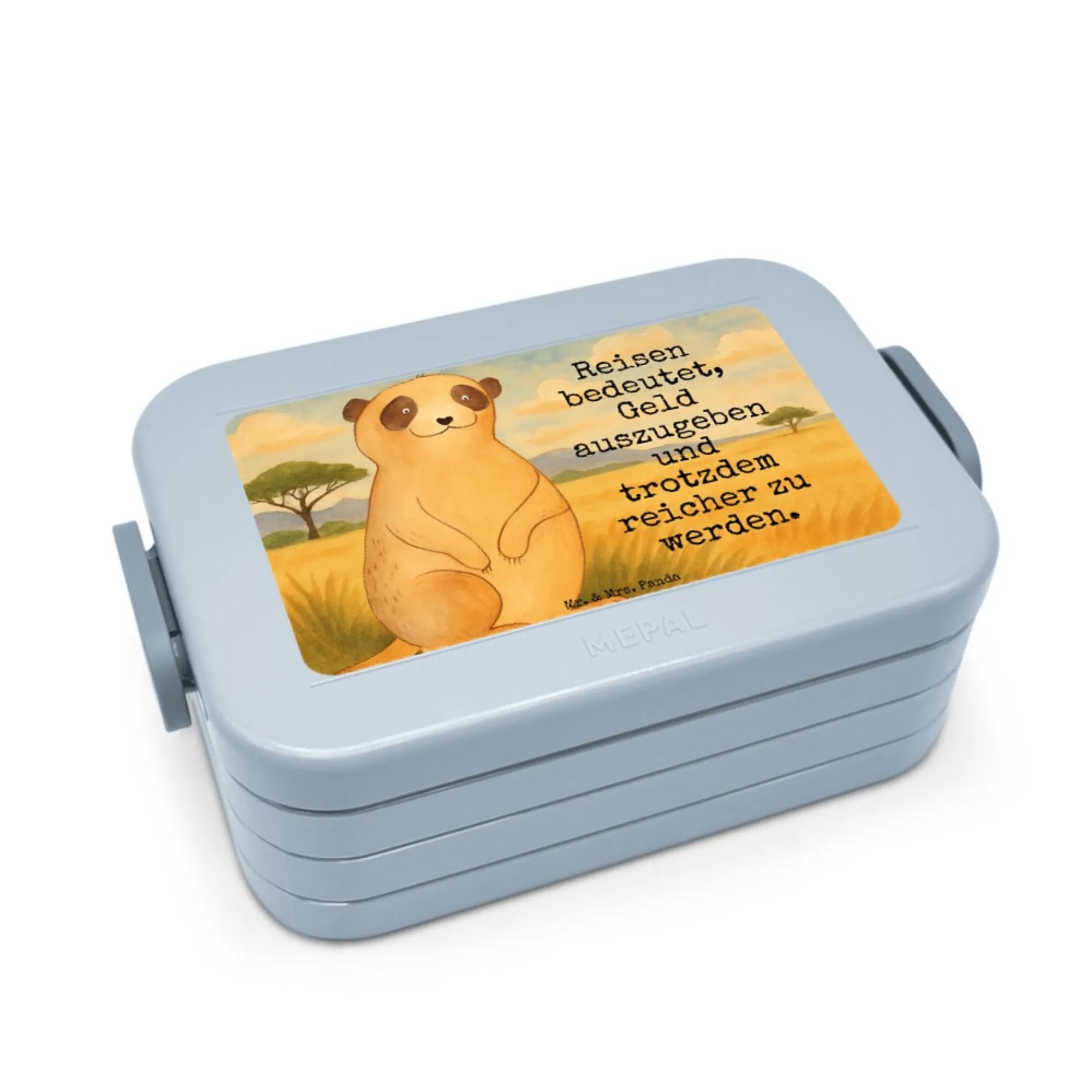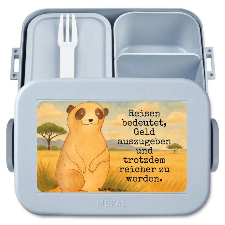 MEPAL Bentobox Erdmännchen Design - mit Spruch - Blau Pastell