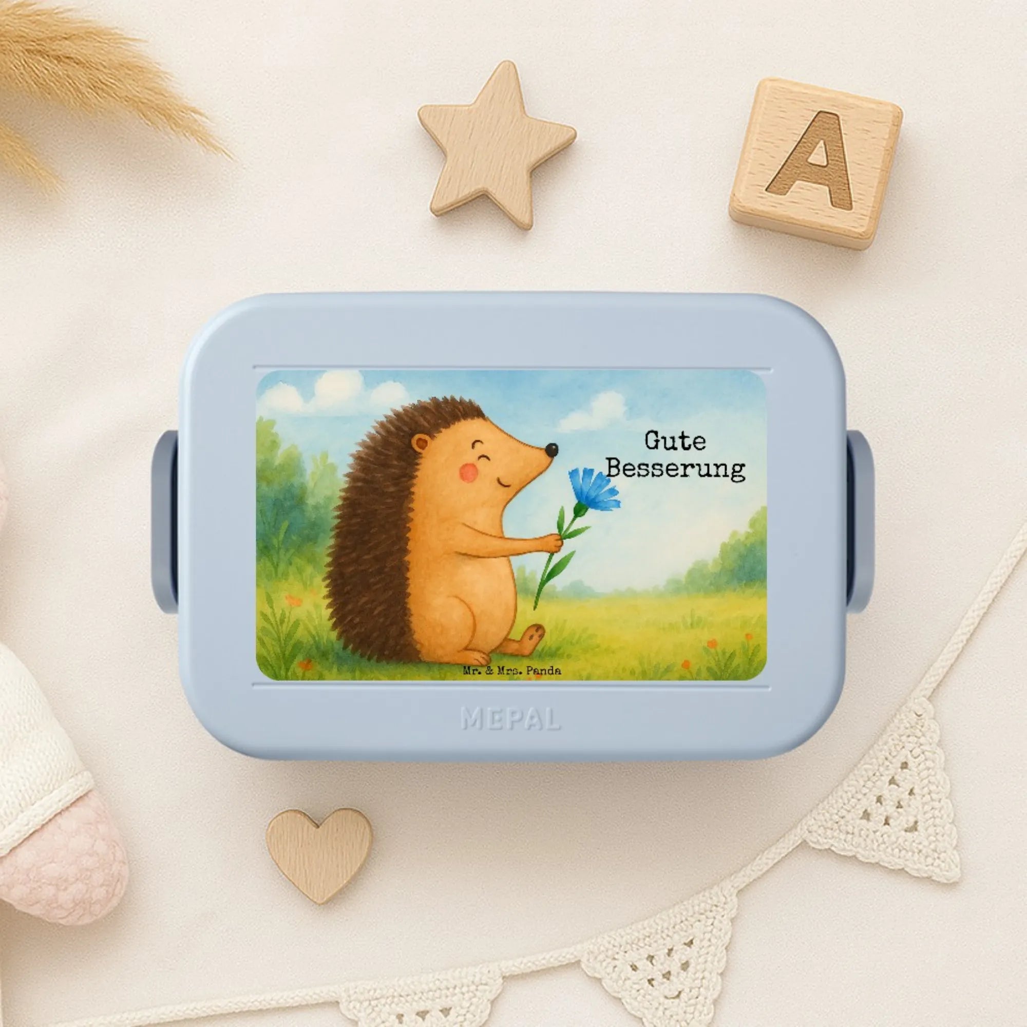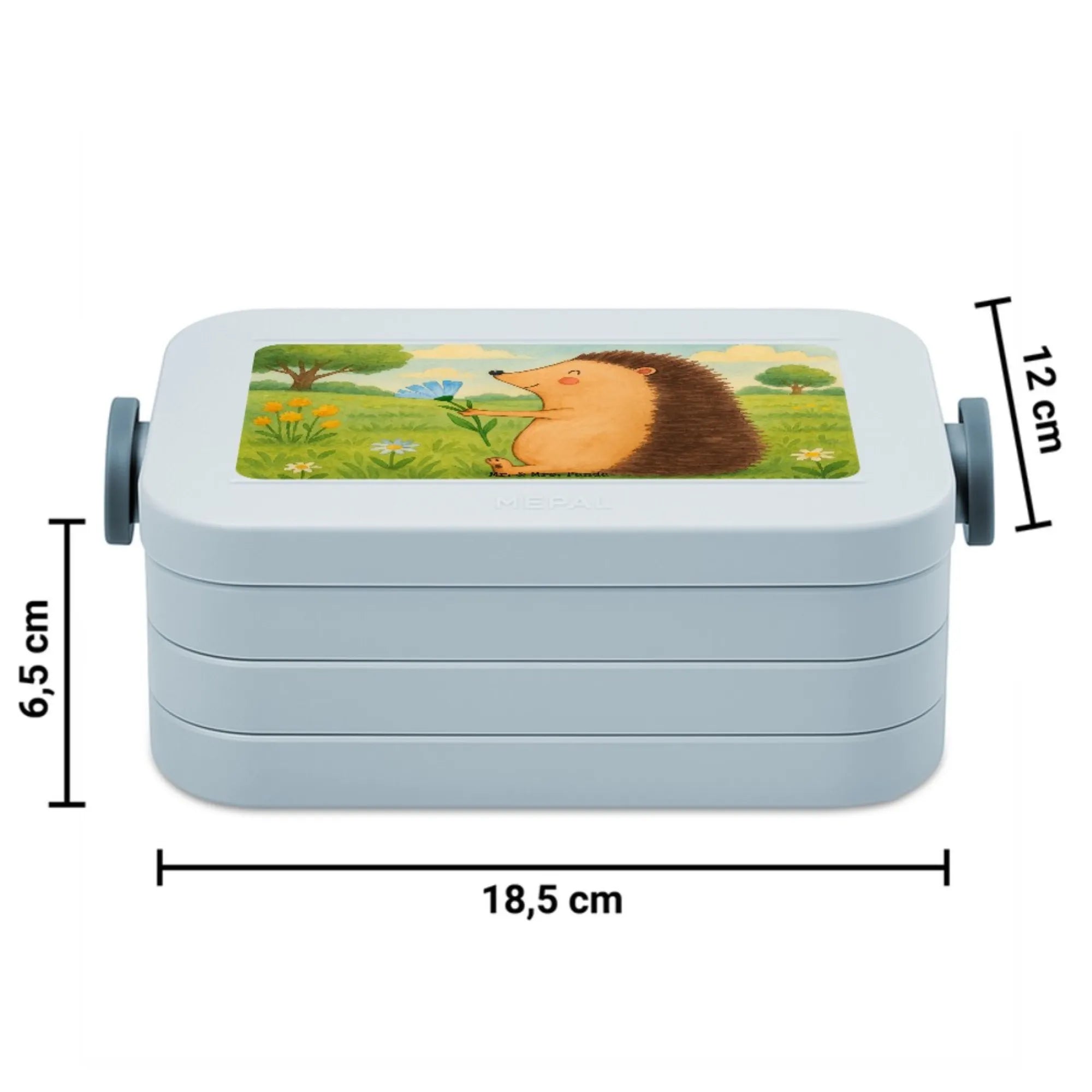 MEPAL Bentobox Igel Blumen Design - mit Spruch - Blau Pastell