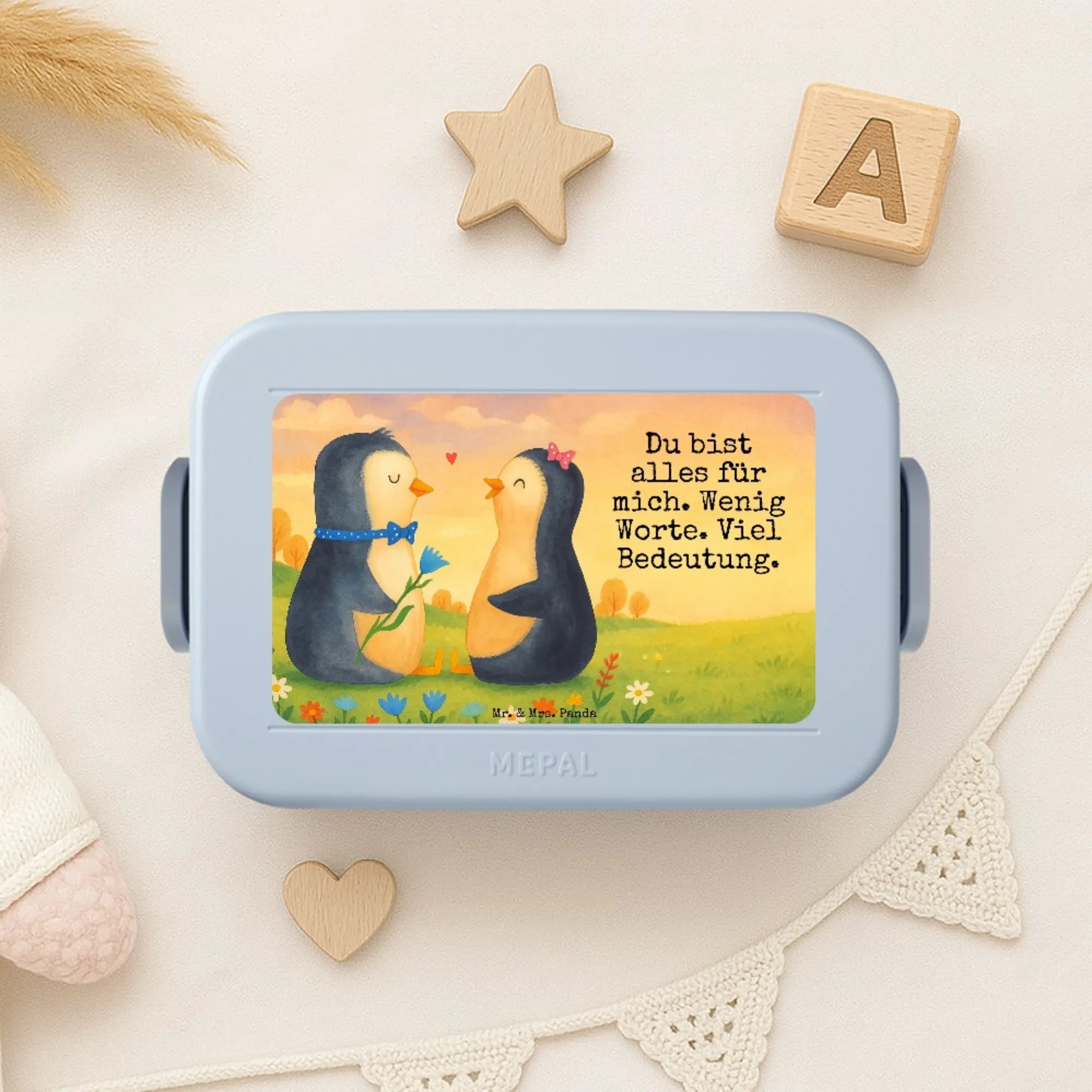MEPAL Bentobox Pinguin Pärchen Design - mit Spruch - Blau Pastell