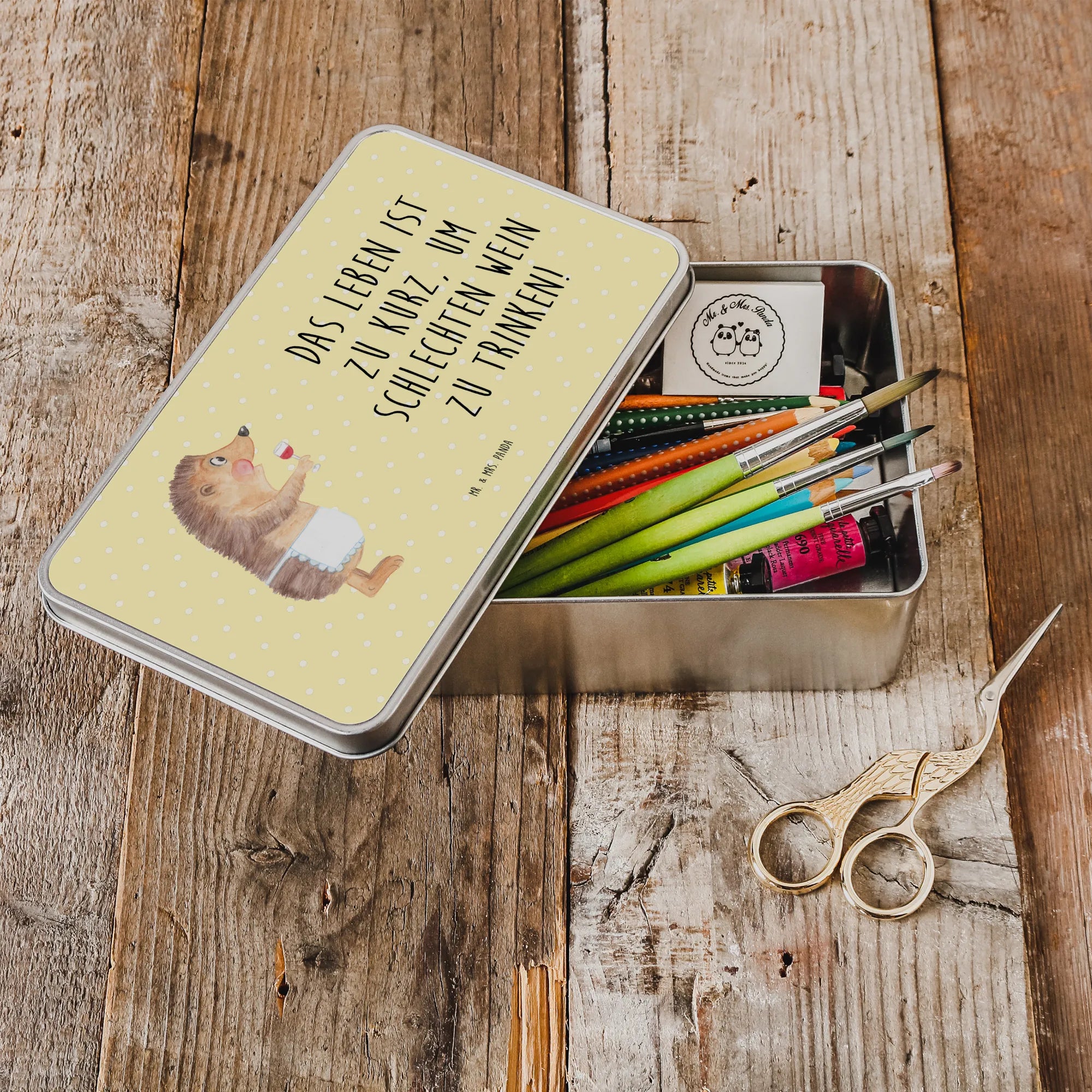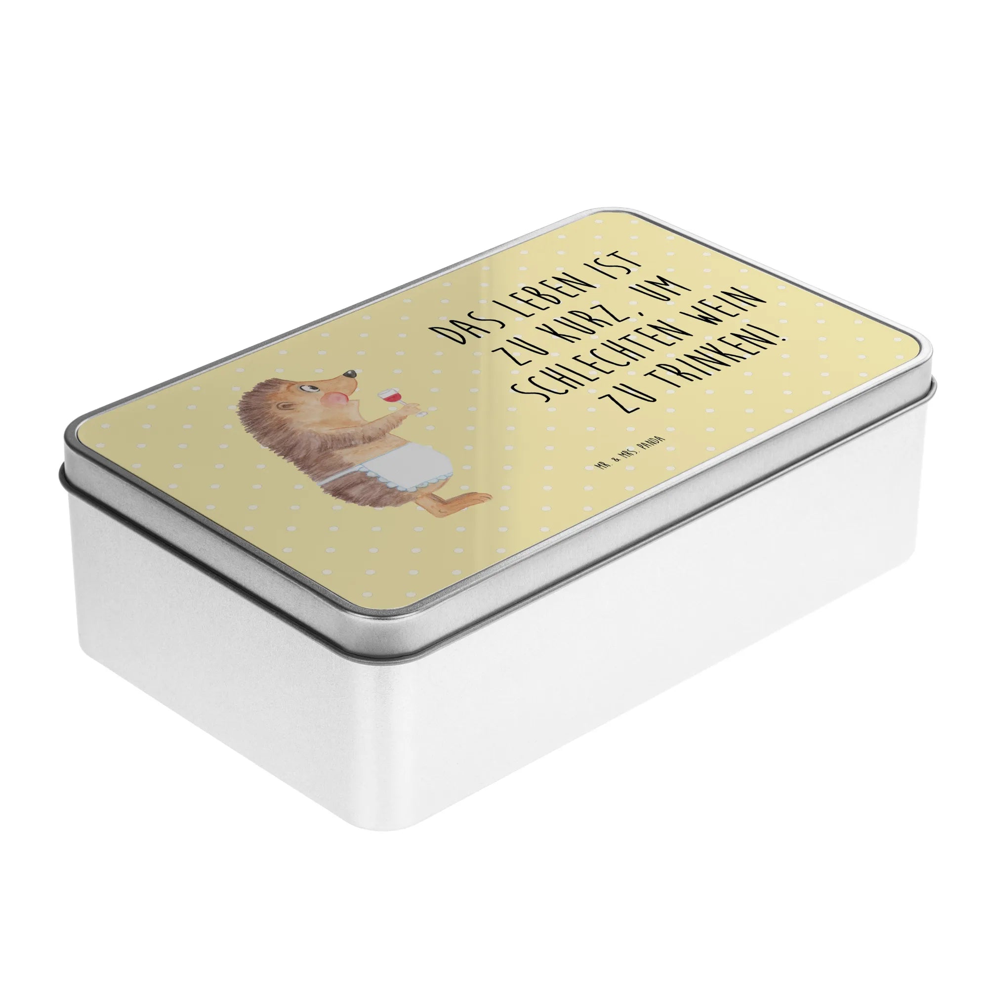 Introducing the delightful Metal Tin featuring a charming hedgehog with wine from the beloved Small World collection by Mr. & Mrs. Panda! This adorable tin isn't just a beautiful piece of decor; it's a perfect gift for any wine lover in your life! Measuring at 7 inches by 5 inches and 1 inch deep, this durable container is made from high-quality metal, ensuring it stands the test of time while showcasing its vibrant design.