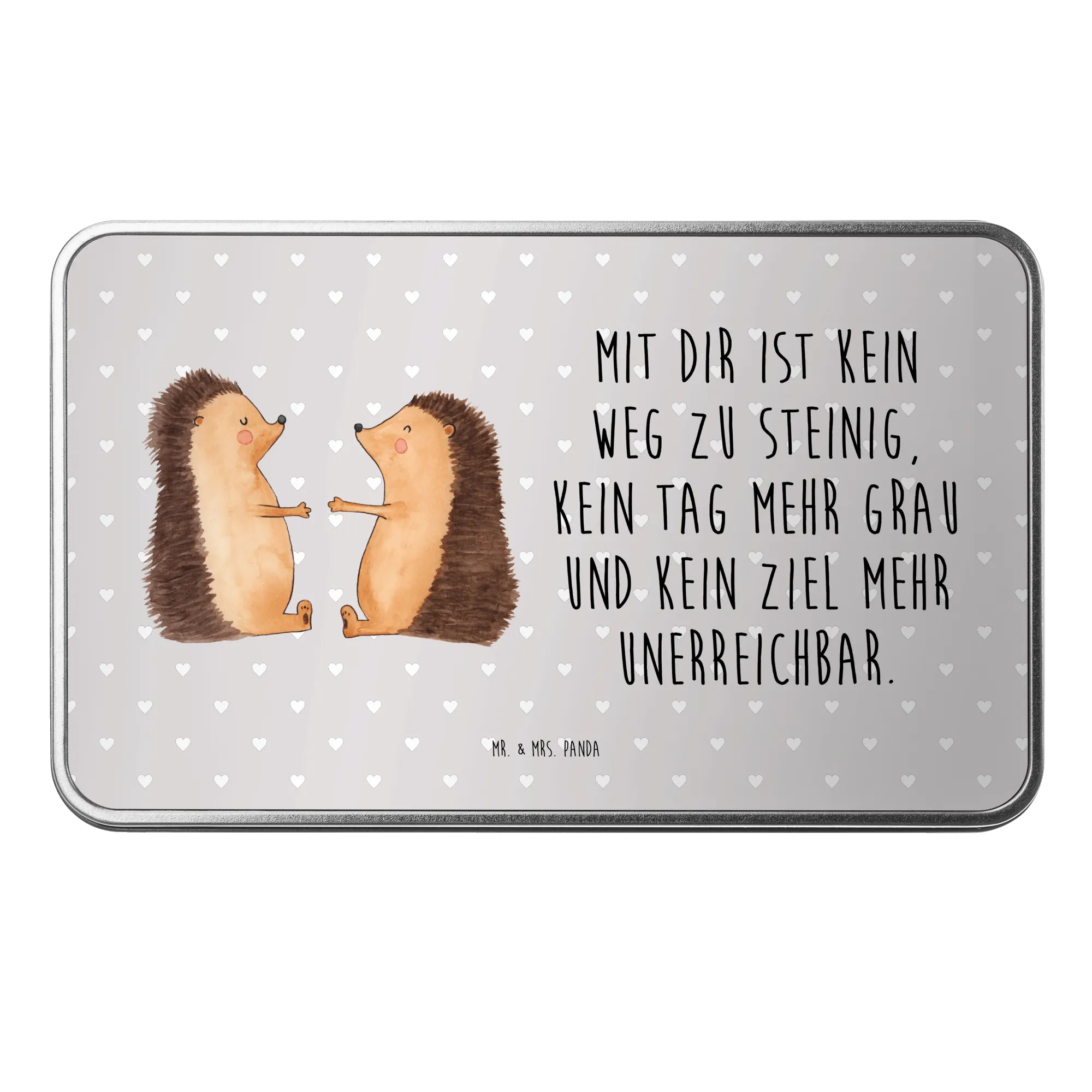 Looking for the perfect gift to express your love? Look no further than the adorable Metal Tin featuring our charming "Hedgehogs in Love" motif from Mr. & Mrs. Panda! This delightful tin encapsulates the essence of romance with its sweet imagery of two hedgehogs, snug together in a warm embrace, capturing the feeling of being in love. The design showcases the hedgehogs with their eyes closed and arms raised in pure joy, radiating warmth and affection—making it a lovely representation of togetherness and love.