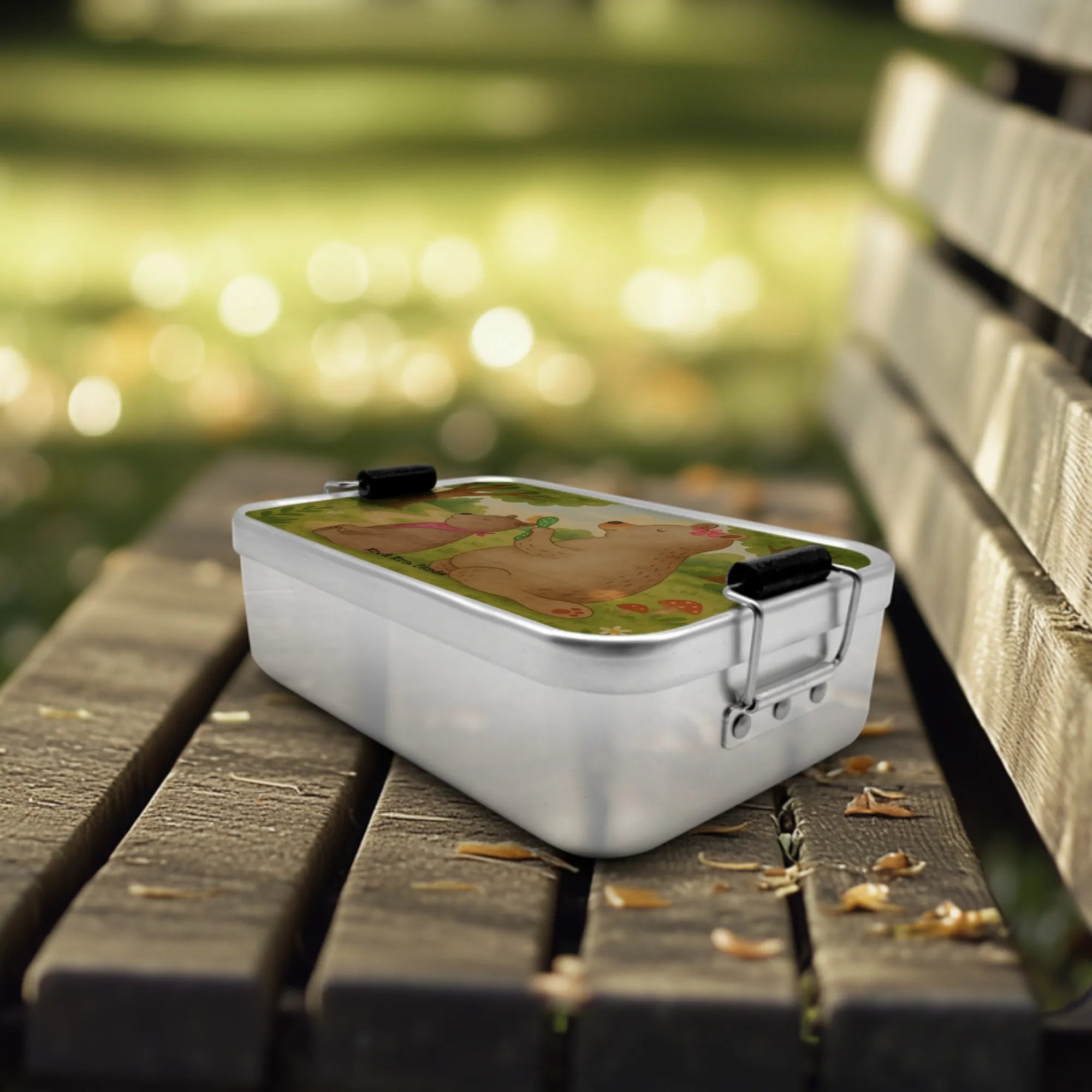 Eine wunderschöne Metall Brotdose von Mr. & Mrs. Panda – liebevoll bedruckt mit dem Motiv „Bär mit Kind“ aus unserer Familien-Kollektion. Auf dem Deckel siehst du einen großen Bären, der mit sanfter Geste das Fell des kleineren Bären bürstet. Dieses Motiv strahlt Wärme, Geborgenheit und familiäre Nähe aus und macht jede Pause zu einem kleinen Wohlfühlmoment.