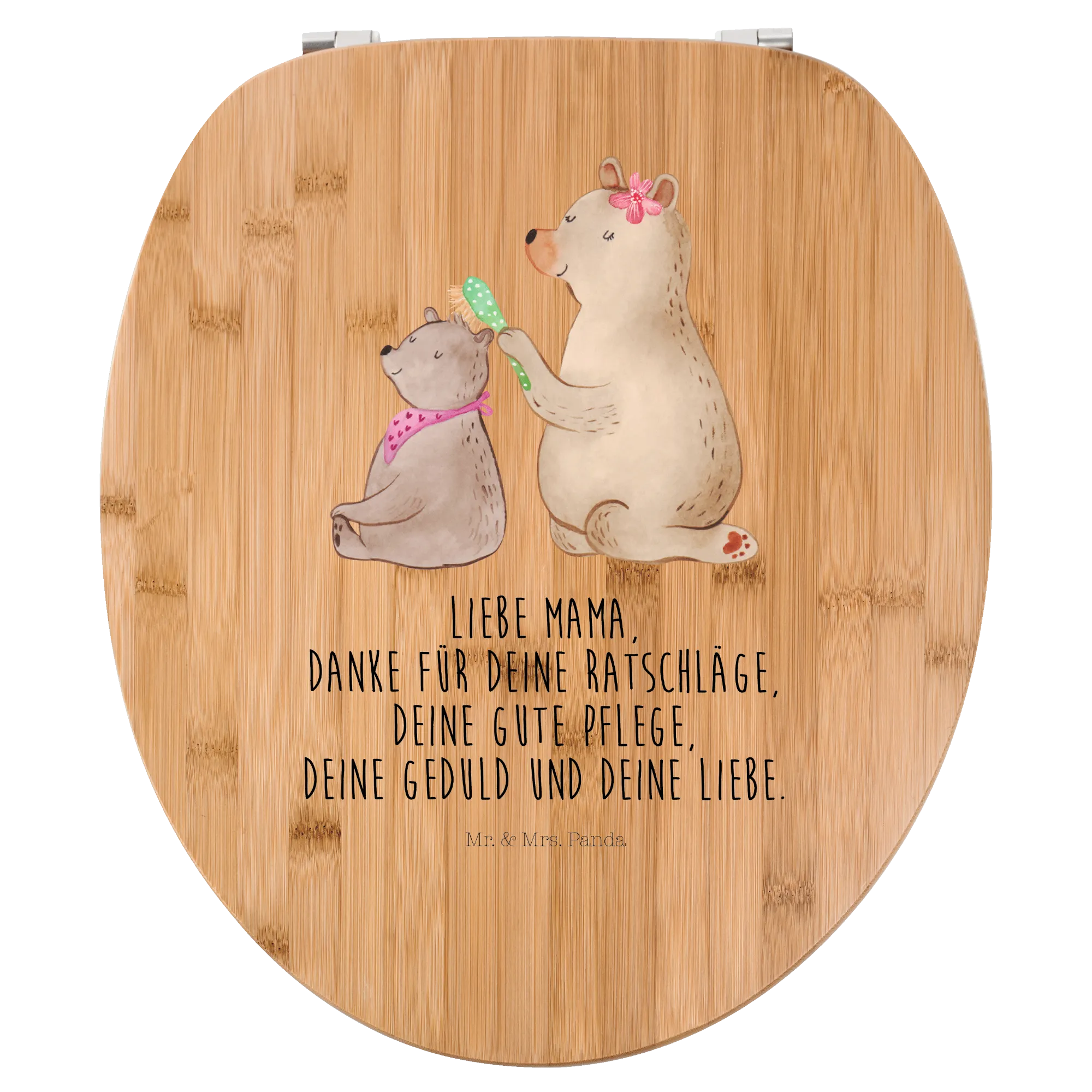 Imagine gifting this lovely toilet seat to your mama or to a beloved mother figure in your life! Whether it’s for Mother's Day, a birthday, or just to show appreciation, this charming bear motif conveys familial affection and warmth. The image captures a large bear lovingly brushing the fur of a small bear, creating a heartwarming scene that resonates deeply with family values. It’s perfect for mothers who cherish those quiet moments of nurturing and bonding.