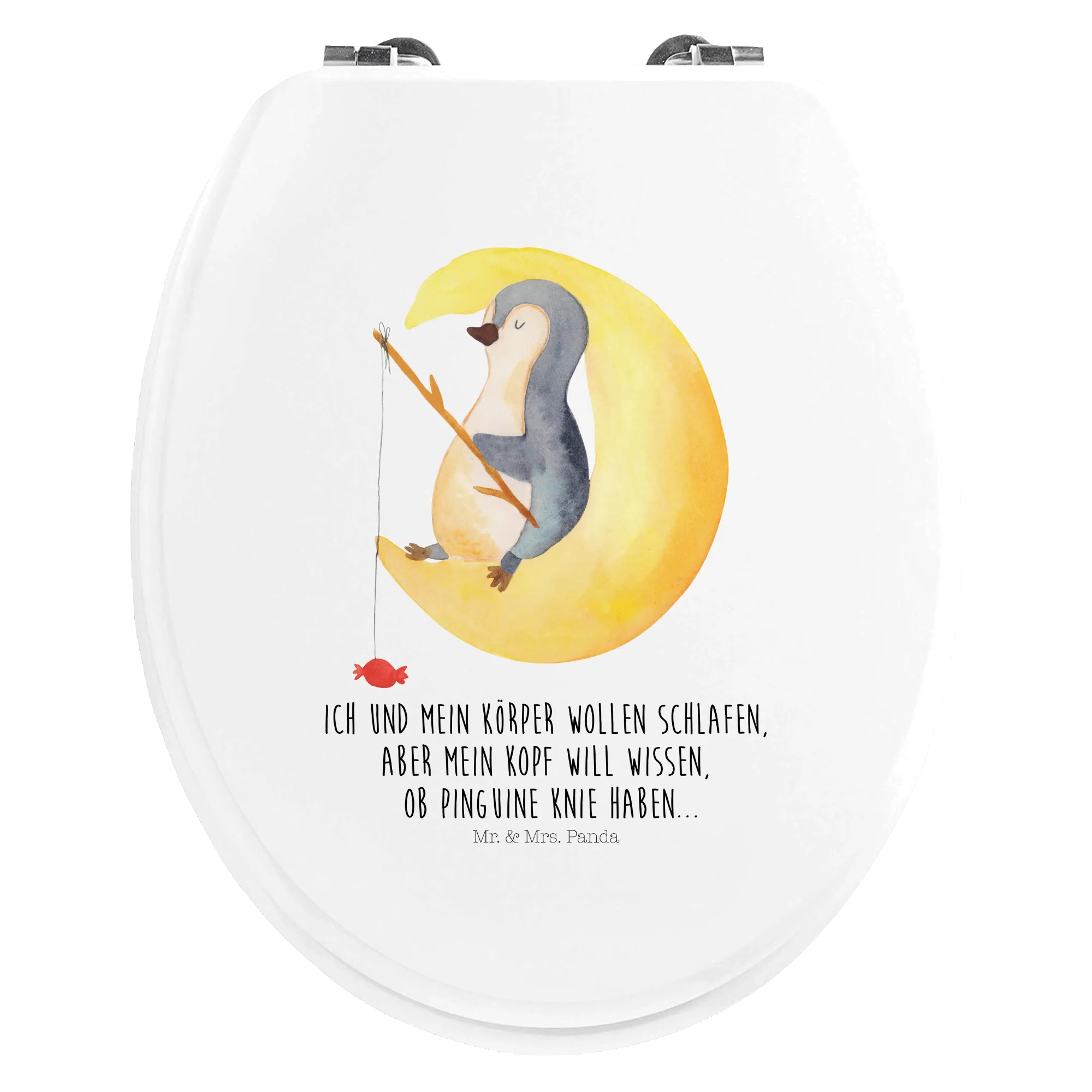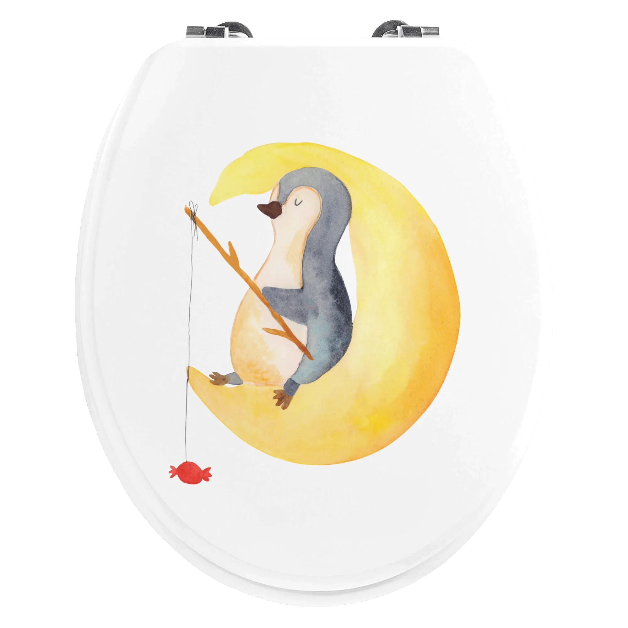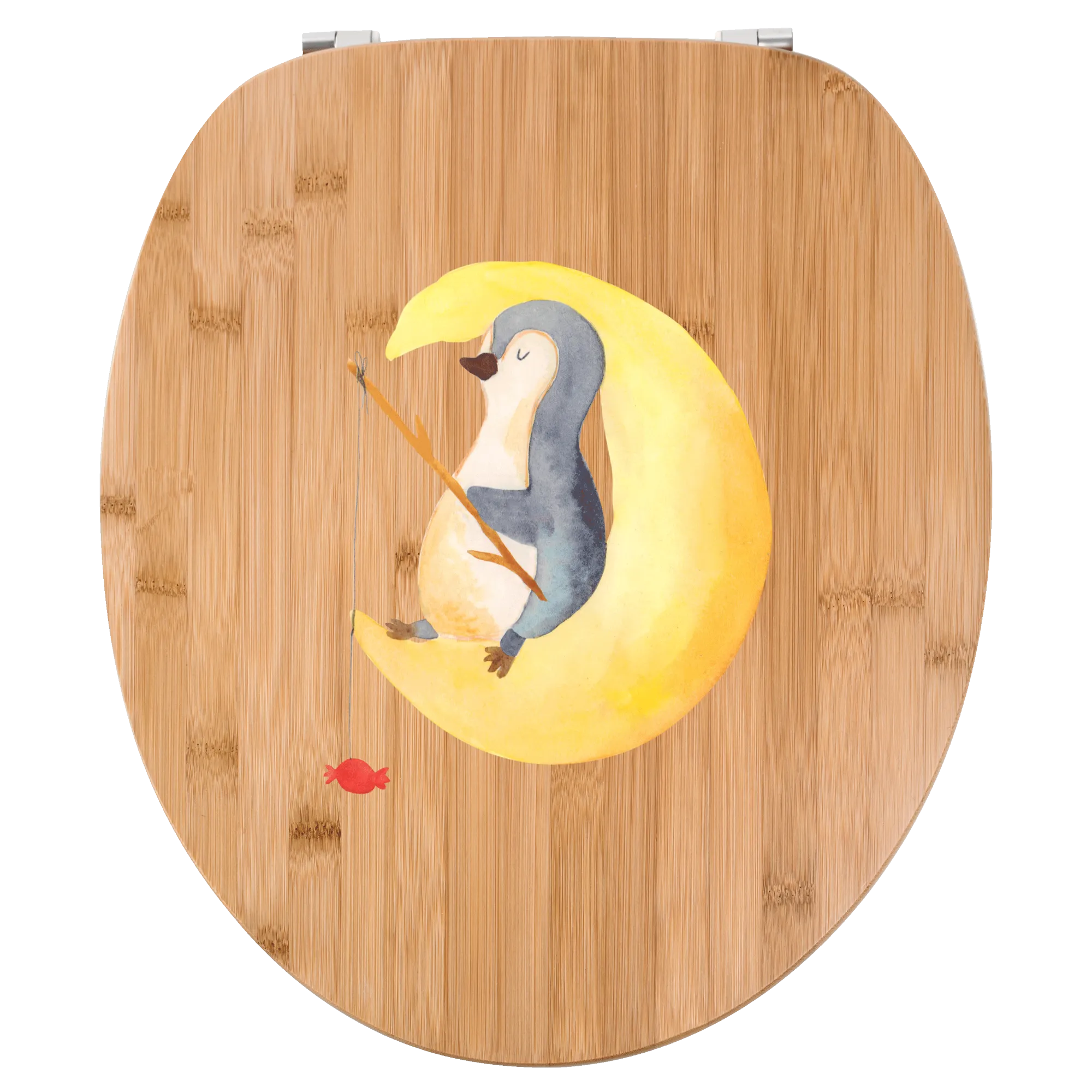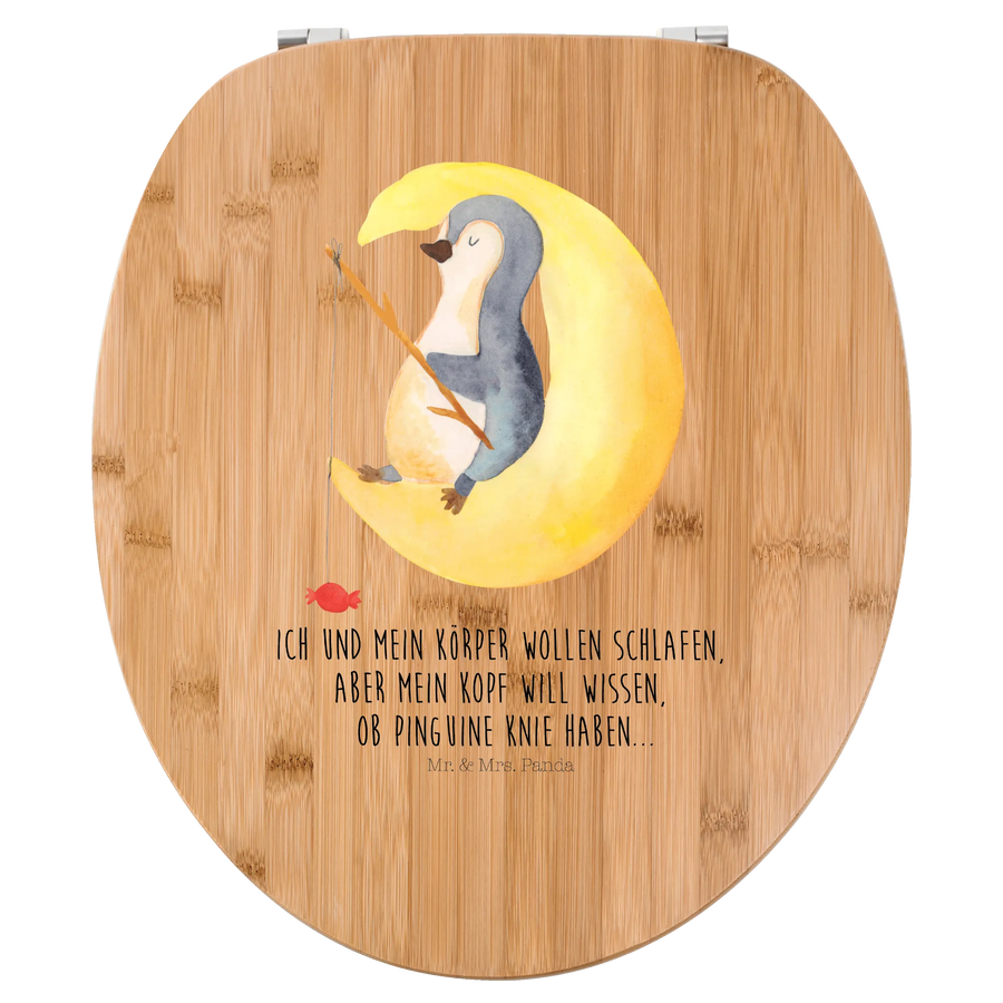 Motif toilet seat Penguin moon - with a saying - Bamboo - Transparent