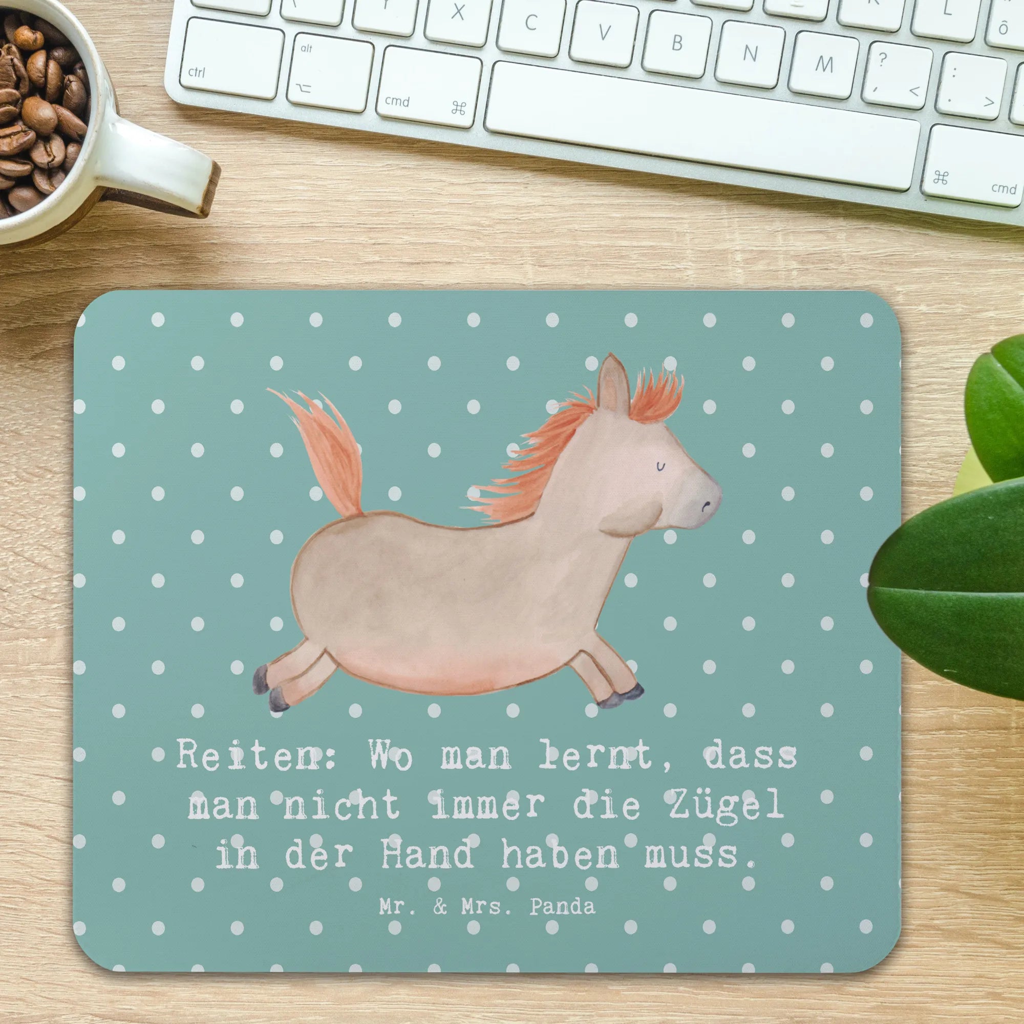 Das Mr. & Mrs. Panda Mauspad "Reiten: Wo man lernt, dass man nicht immer die Zügel in der Hand haben muss" ist das perfekte Geschenk für Pferdeliebhaber und Sportbegeisterte. Ob fürs Büro, das Homeoffice oder als zusätzliches Accessoire am Arbeitsplatz – dieses Mauspad macht jede PC-Arbeit ein bisschen schöner. Die niedlichen Motive und der charmante Spruch bringen Freude in den Alltag und sind eine tolle Erinnerung daran, dass der Spaß am Reiten auch im stressigen Arbeitsleben einen Platz finden sollte.