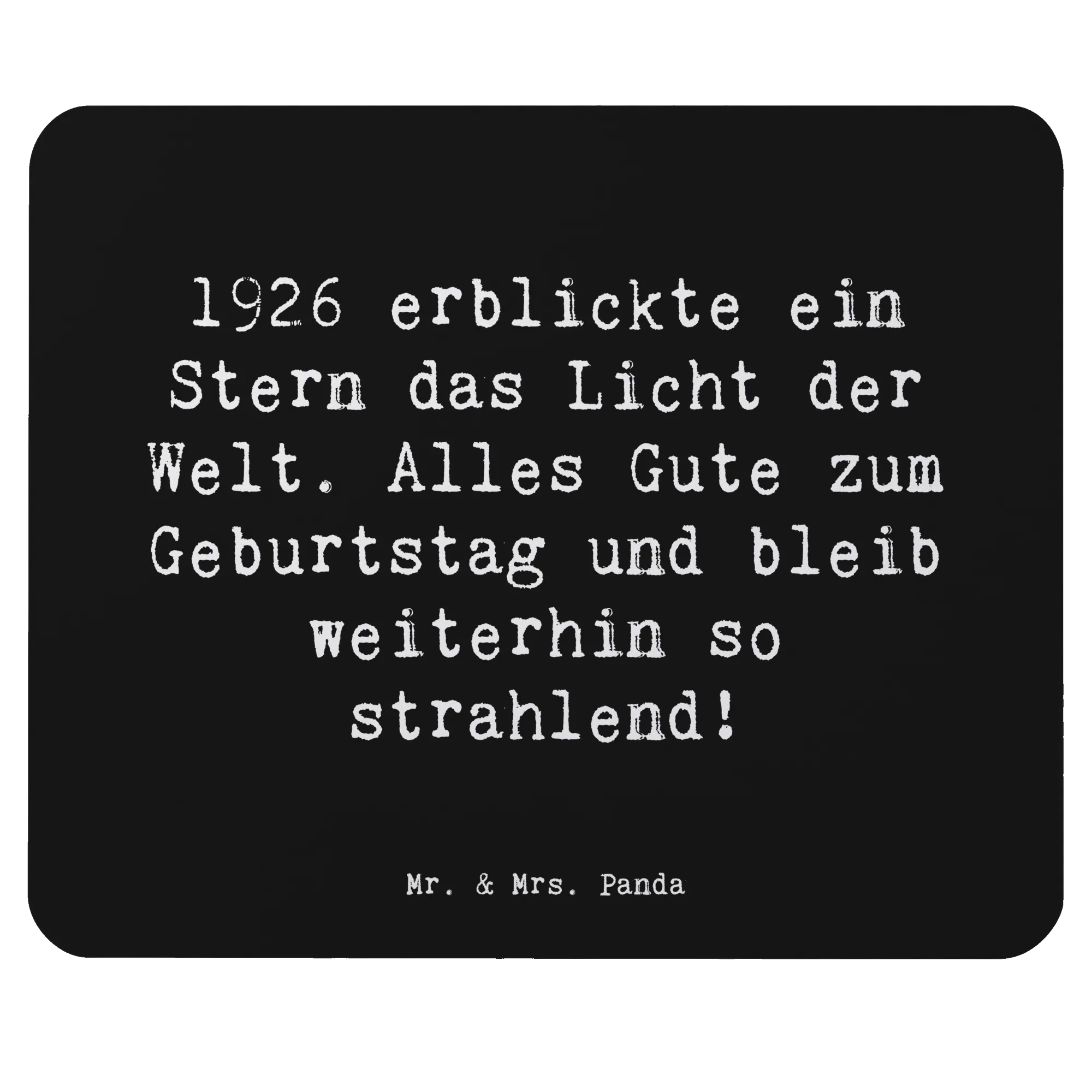 Das perfekte Mauspad für alle, die 1926 geboren wurden! Dieses stilvolle Mauspad von Mr. & Mrs. Panda ist nicht nur ein wunderbares Accessoire für Dein Arbeitszimmer, sondern auch eine ganz besondere Hommage an Deinen Geburtstag. Mit dem einzigartigen Motiv „1926 erblickte ein Stern das Licht der Welt. Alles Gute zum Geburtstag und bleib weiterhin so strahlend!“ versüßt dieses Mauspad nicht nur Deinen Arbeitstag, sondern erinnert Dich ständig daran, wie besonders Du bist.