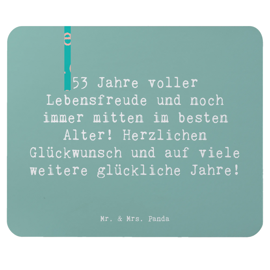 Das Mauspad "53 Jahre voller Lebensfreude" von Mr. & Mrs. Panda ist das ideale Geschenk für alle, die ihren 53. Geburtstag gebührend feiern möchten. Mit liebevoll gestalteten Motiven und einem fröhlichen Spruch ist dieses Mauspad mehr als nur ein praktisches PC-Zubehör – es ist ein Stück Lebensfreude, das jeden Arbeitsplatz bereichert!