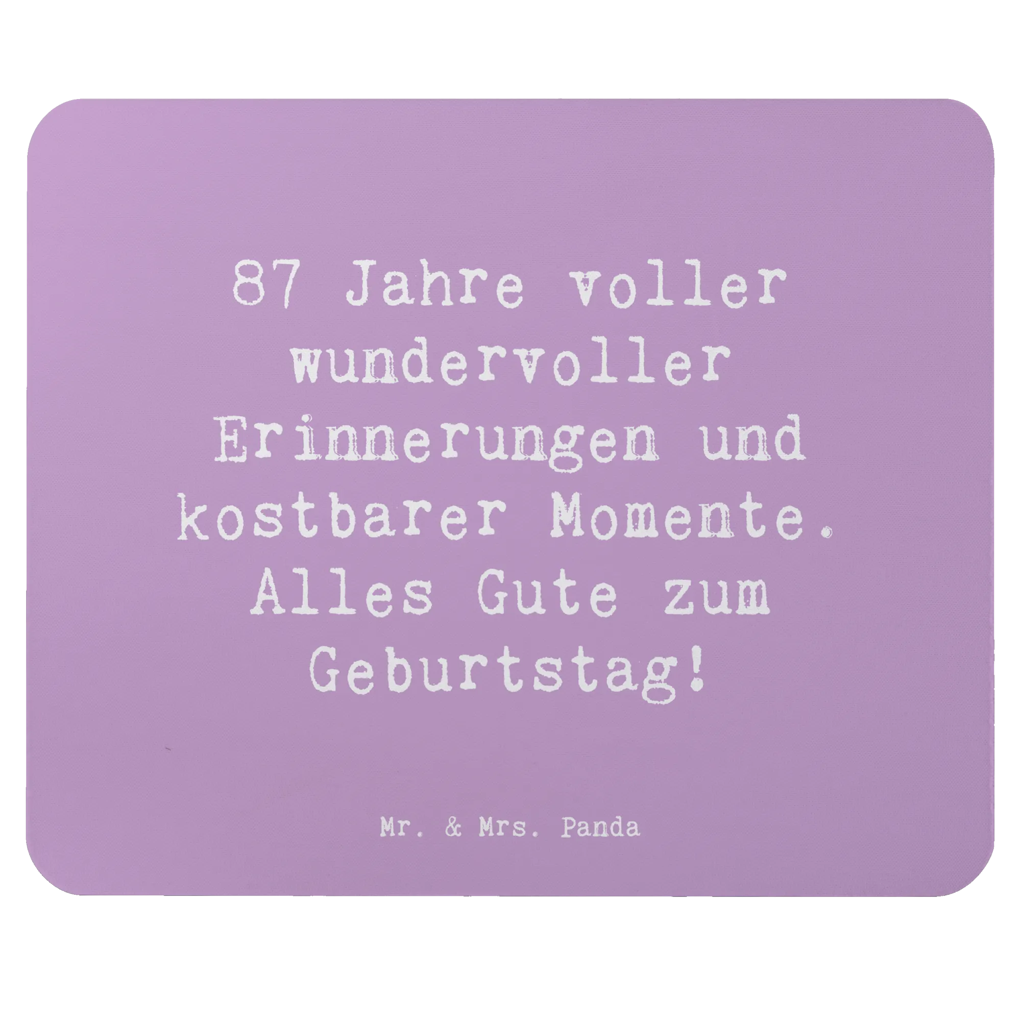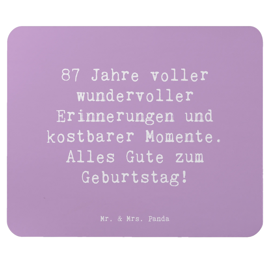 Das perfekte Geschenk für einen ganz besonderen 87. Geburtstag! Unser Mauspad von Mr. & Mrs. Panda ist nicht nur ein praktisches Computer Zubehör, sondern auch ein zauberhaftes und persönliches Geburtstagsgeschenk. Mit dem liebevollen Spruch "87 Jahre voller wundervoller Erinnerungen und kostbarer Momente. Alles Gute zum Geburtstag!" wird jeder Arbeitstag im Büro zu einem kleinen Fest.