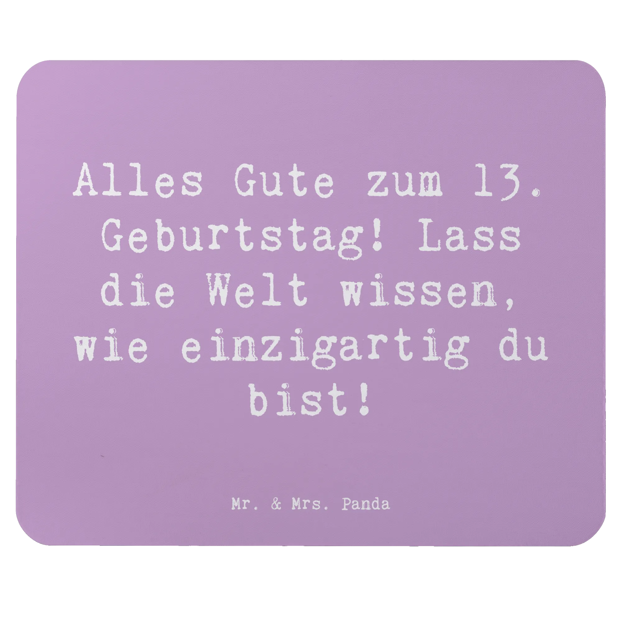 Das einzigartige Mauspad von Mr. & Mrs. Panda mit dem Motiv „Alles Gute zum 13. Geburtstag! Lass die Welt wissen, wie einzigartig du bist!“ ist das perfekte Geschenk für jeden, der seinen 13. Geburtstag feiert! Ob für einen Freund, ein Familienmitglied oder sogar für dich selbst, dieses stilvolle Mauspad bringt Freude und Farbe in jedes Arbeitszimmer oder Homeoffice.