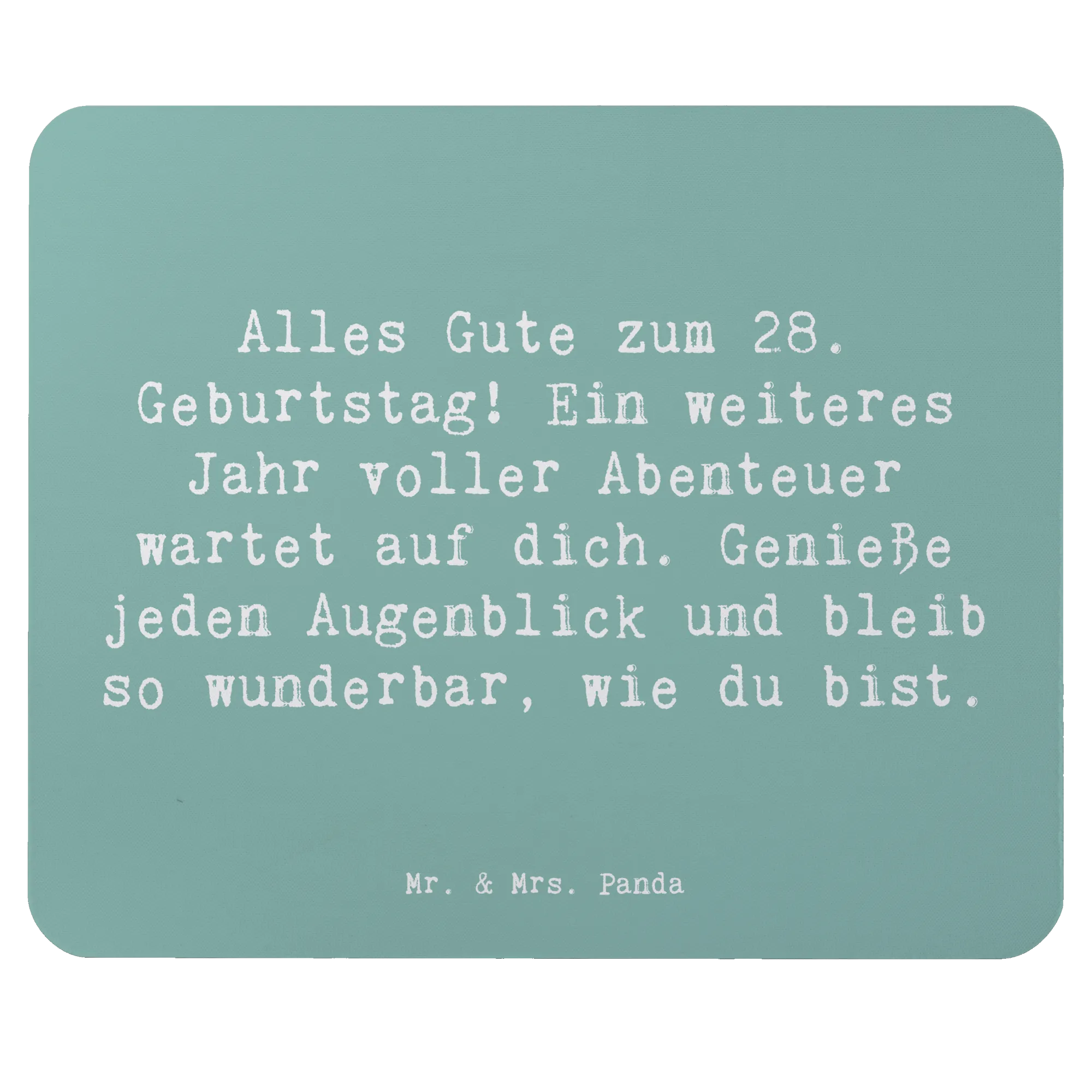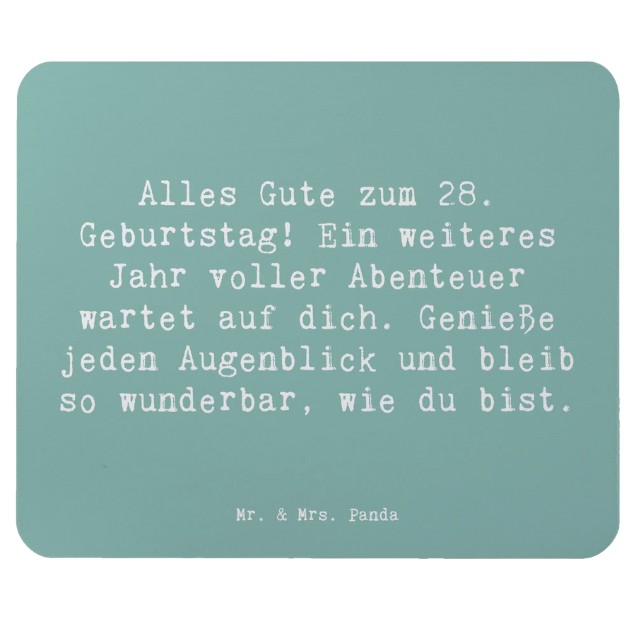 Suchst du das perfekte Geschenk zum 28. Geburtstag? Unser einzigartiges Mauspad von Mr. & Mrs. Panda ist die Antwort! Es vereint Funktionalität mit einem liebevollen Design, das jeden Schreibtisch verschönert. Mit dem Slogan "Alles Gute zum 28. Geburtstag! Ein weiteres Jahr voller Abenteuer wartet auf dich. Genieße jeden Augenblick und bleib so wunderbar, wie du bist." bringt es nicht nur Freude, sondern erinnert den Beschenkten täglich an diesen besonderen Anlass.
