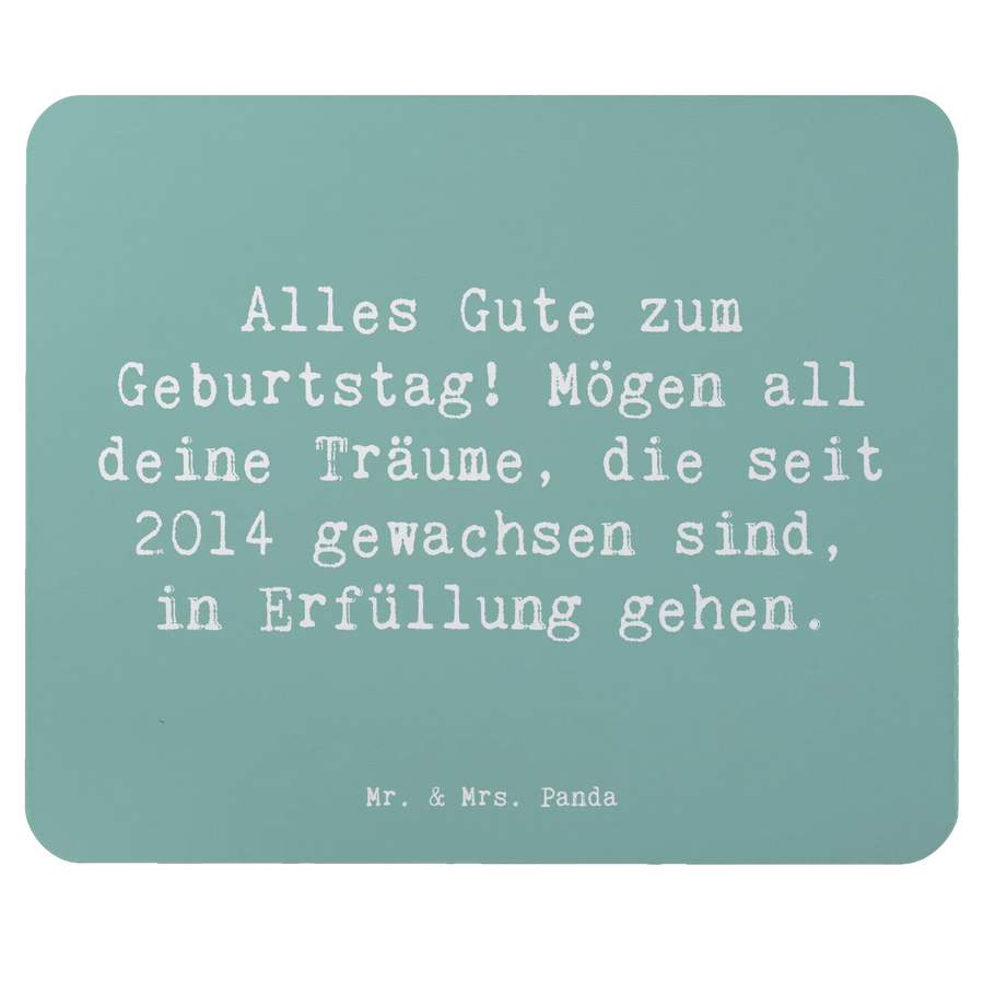 Wenn du auf der Suche nach einem ganz besonderen Geschenk bist, dann ist das Mauspad "2014 Geburtstag" von Mr. & Mrs. Panda die perfekte Wahl! Dieses exklusive Mauspad gehört zur einzigartigen Geburtstag Geburtsjahr-Kollektion und bringt nicht nur viel Freude, sondern auch Stil in jedes Arbeitszimmer oder Homeoffice.