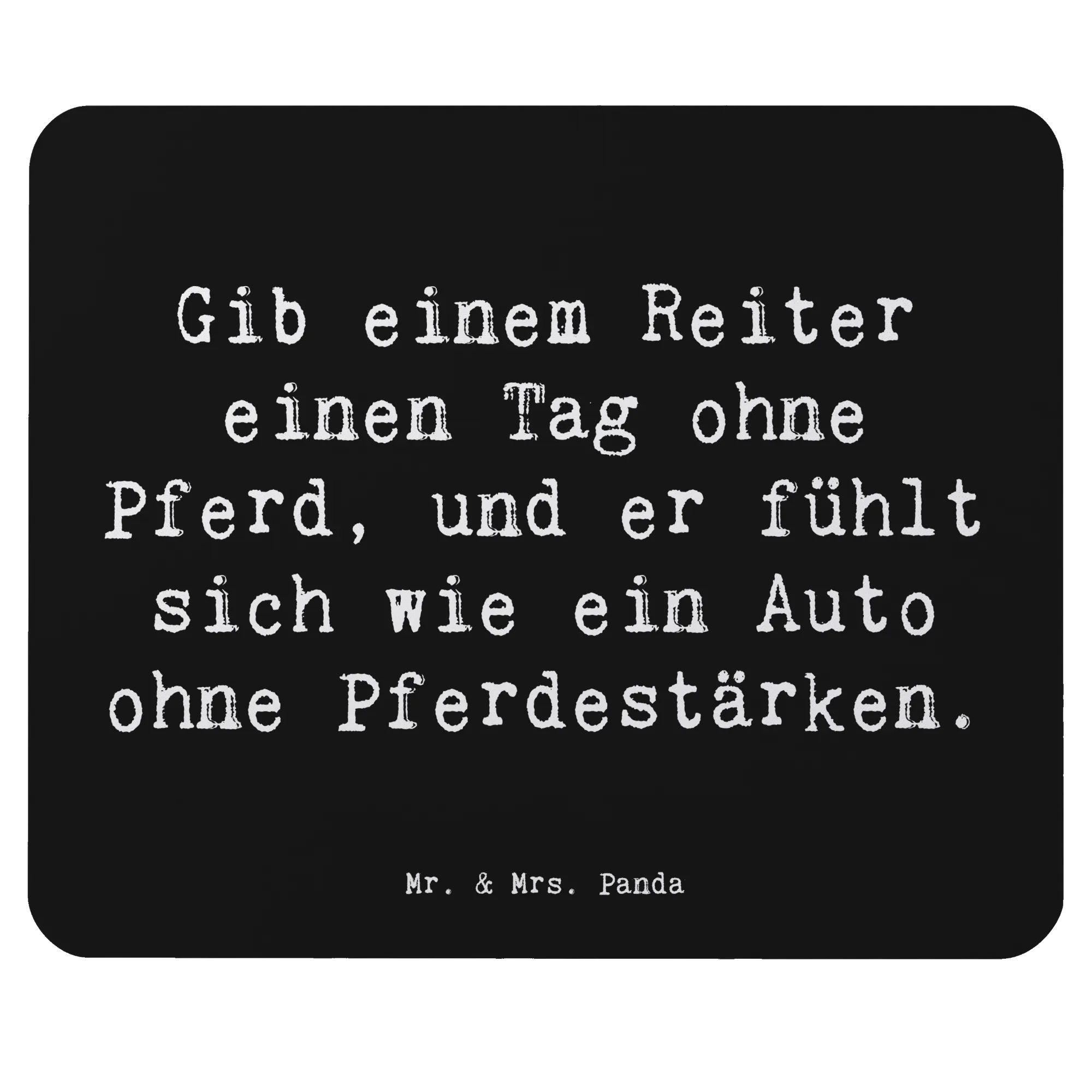 Das wunderschöne Mauspad von Mr. & Mrs. Panda ist das perfekte Geschenk für all jene, die den Reitsport lieben! Mit dem motivierenden Spruch "Gib einem Reiter einen Tag ohne Pferd, und er fühlt sich wie ein Auto ohne Pferdestärken" bringt dieses Mauspad nicht nur Freude an den Arbeitsplatz oder ins Homeoffice, sondern erinnert auch täglich an die Leidenschaft zur Reiterei.