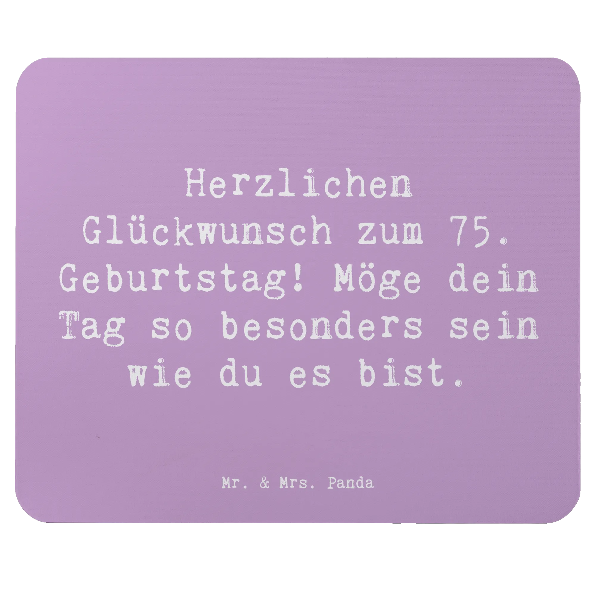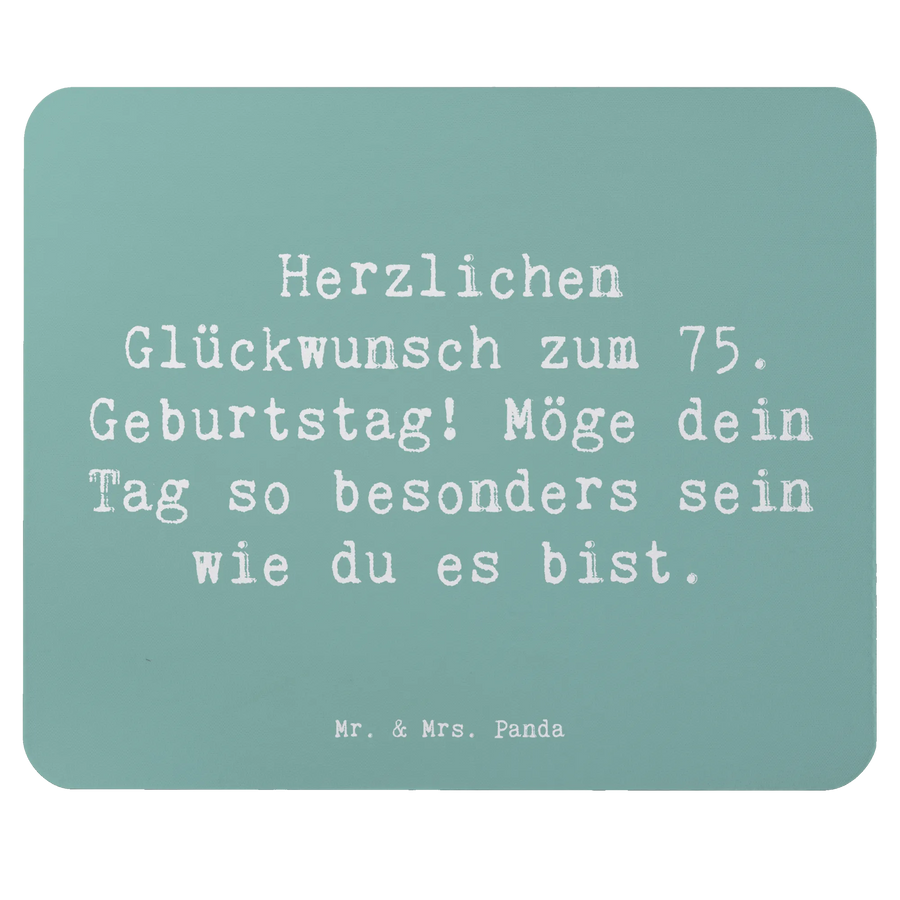 Suchst du ein ganz besonderes Geschenk zum 75. Geburtstag? Dann ist das Mauspad "Herzlichen Glückwunsch zum 75. Geburtstag! Möge dein Tag so besonders sein wie du es bist." von Mr. & Mrs. Panda genau das Richtige! Dieses einzigartige Mauspad wurde mit viel Liebe zum Detail entworfen und ist nicht nur ein wunderschönes Accessoire für jedes Büro oder Arbeitszimmer, sondern bringt auch ein Stück Freude in den Alltag!