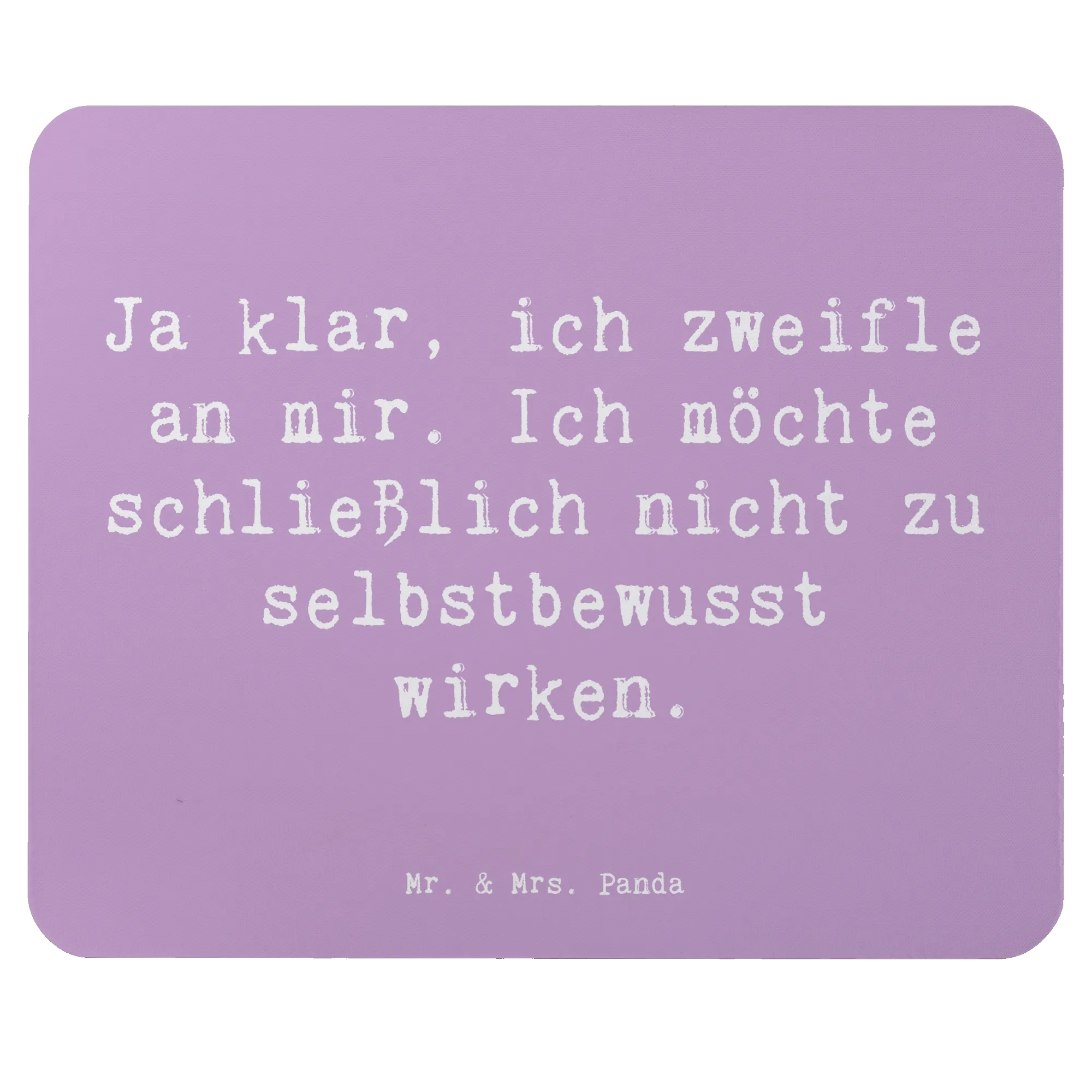 Das perfekte Mäusepad von Mr. & Mrs. Panda ist nicht nur ein nützlicher Begleiter für deinen Arbeitsalltag oder das Homeoffice, sondern auch ein ausgefallenes Stück Design, das deine Stimmung hebt! Mit einem einzigartigen Motiv, das Selbstzweifel thematisiert, und dem witzigen Spruch: "Ja klar, ich zweifle an mir. Ich möchte schließlich nicht zu selbstbewusst wirken.", bringt es ein Lächeln auf dein Gesicht, während du am Computer arbeitest.