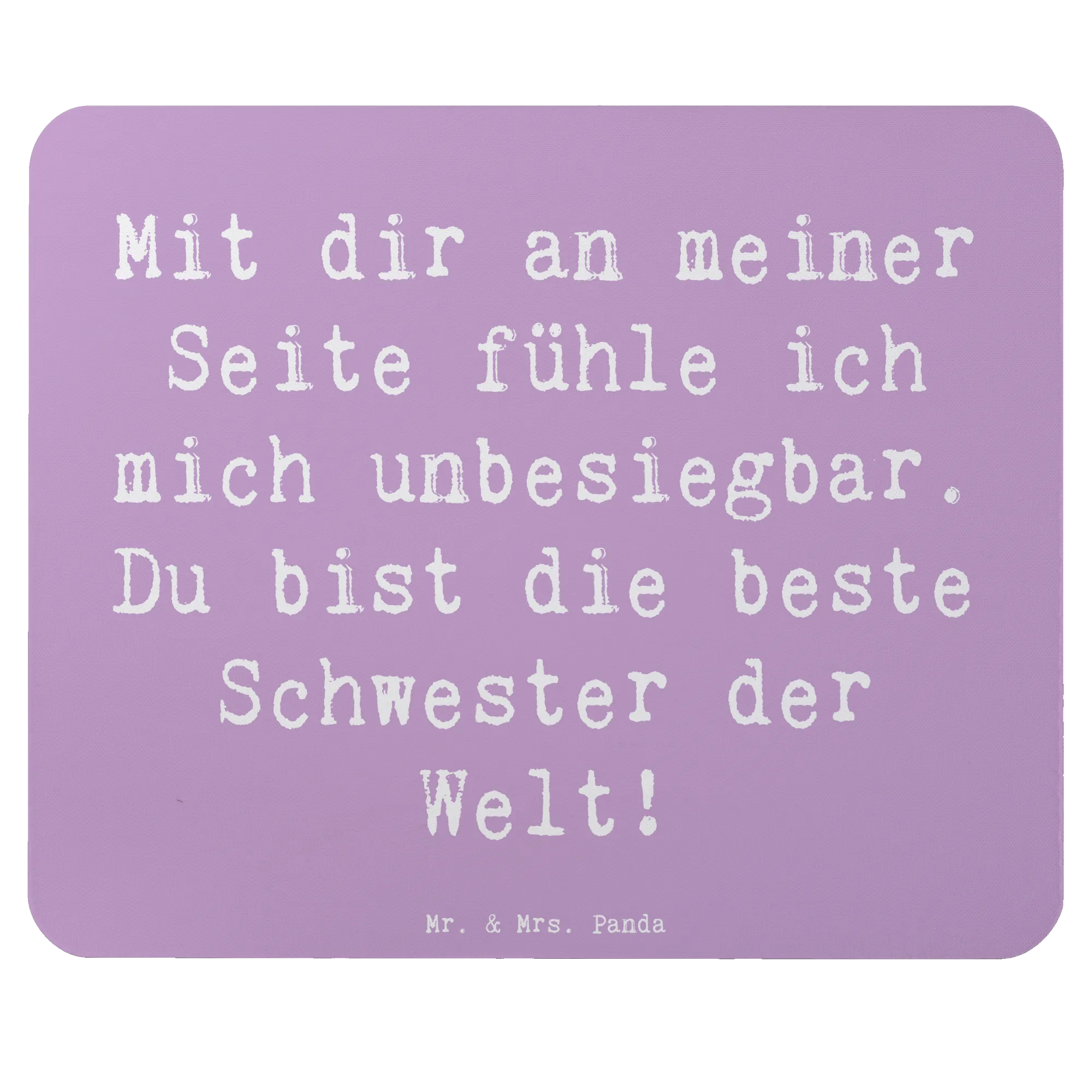 Das Mauspad "Schwester" aus der Dankes-Kollektion von Mr. & Mrs. Panda ist der perfekte Begleiter für deinen Schreibtisch und ein wunderschönes Dankeschön für die beste Schwester der Welt! Mit dem motivierenden Spruch "Mit dir an meiner Seite fühle ich mich unbesiegbar. Du bist die beste Schwester der Welt!" zaubert es jedem beim Arbeiten ein Lächeln ins Gesicht. Es ist nicht nur ein praktisches Stück Computer Zubehör, sondern auch eine liebevolle Aufmerksamkeit, die für jeden Anlass geeignet ist. Sei es zum Geburtstag, zu Weihnachten oder einfach so, um "Danke" zu sagen!