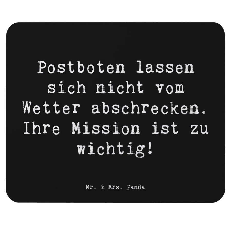 Das Mauspad Postbote aus der einzigartigen Berufe Kollektion von Mr. & Mrs. Panda ist nicht nur ein stilvolles Büroaccessoire, sondern auch eine wunderbare Hommage an alle Postboten und Zusteller. Der liebevoll gestaltete Spruch "Postboten lassen sich nicht vom Wetter abschrecken. Ihre Mission ist zu wichtig!" bringt die Wertschätzung für diesen so wichtigen Beruf perfekt zum Ausdruck. Wenn Du auf der Suche nach einem Geschenk für einen Freund, Kollegen oder ein Familienmitglied bist, das im Postdienst arbeitet, dann ist dieses Mauspad genau das Richtige!