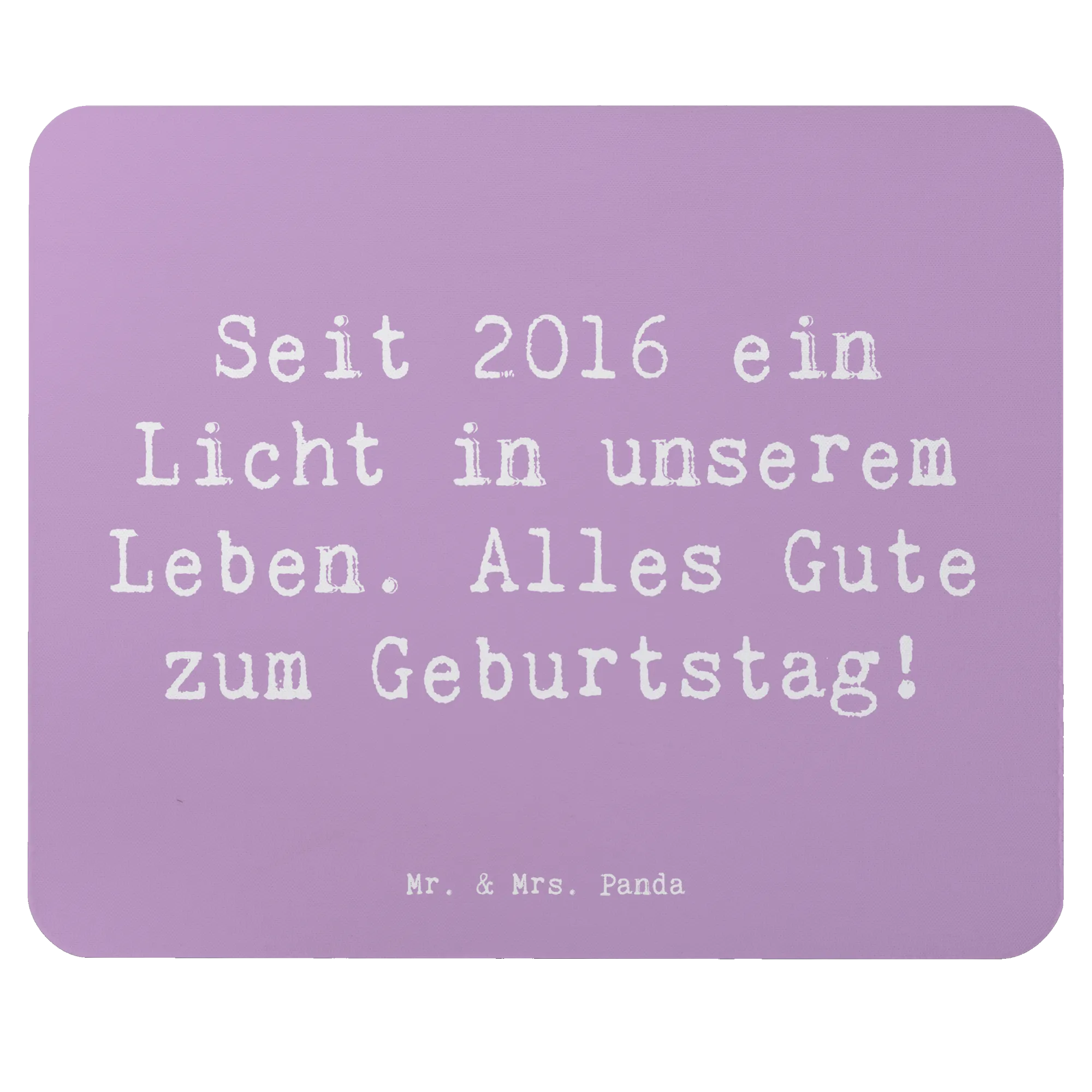 Das wunderschöne Mauspad „2016 Geburtstag“ von Mr. & Mrs. Panda ist das perfekte Geschenk für alle, die diesen besonderen Jahrgang feiern! Ob für Freund:innen, Familienmitglieder oder Arbeitskolleg:innen – dieses Mauspad bringt Freude in jeden Arbeitsplatz und erinnert täglich an den eigenen Geburtstag. Mit dem liebevollen Slogan „Seit 2016 ein Licht in unserem Leben. Alles Gute zum Geburtstag!“ wird jeder Arbeitstag zu einem kleinen Fest.