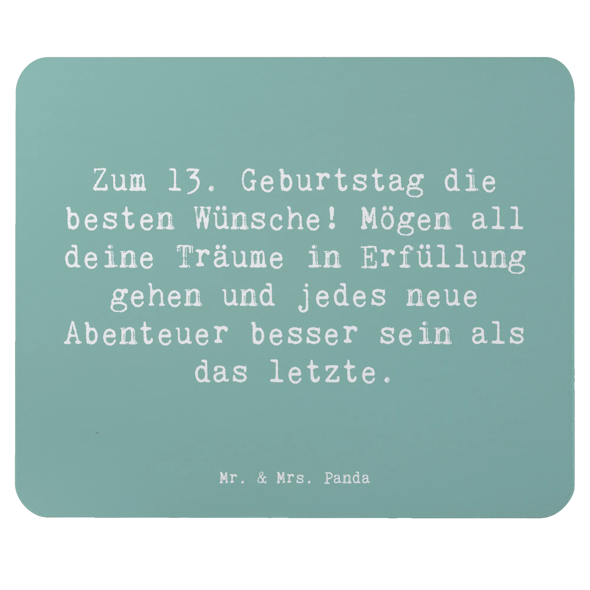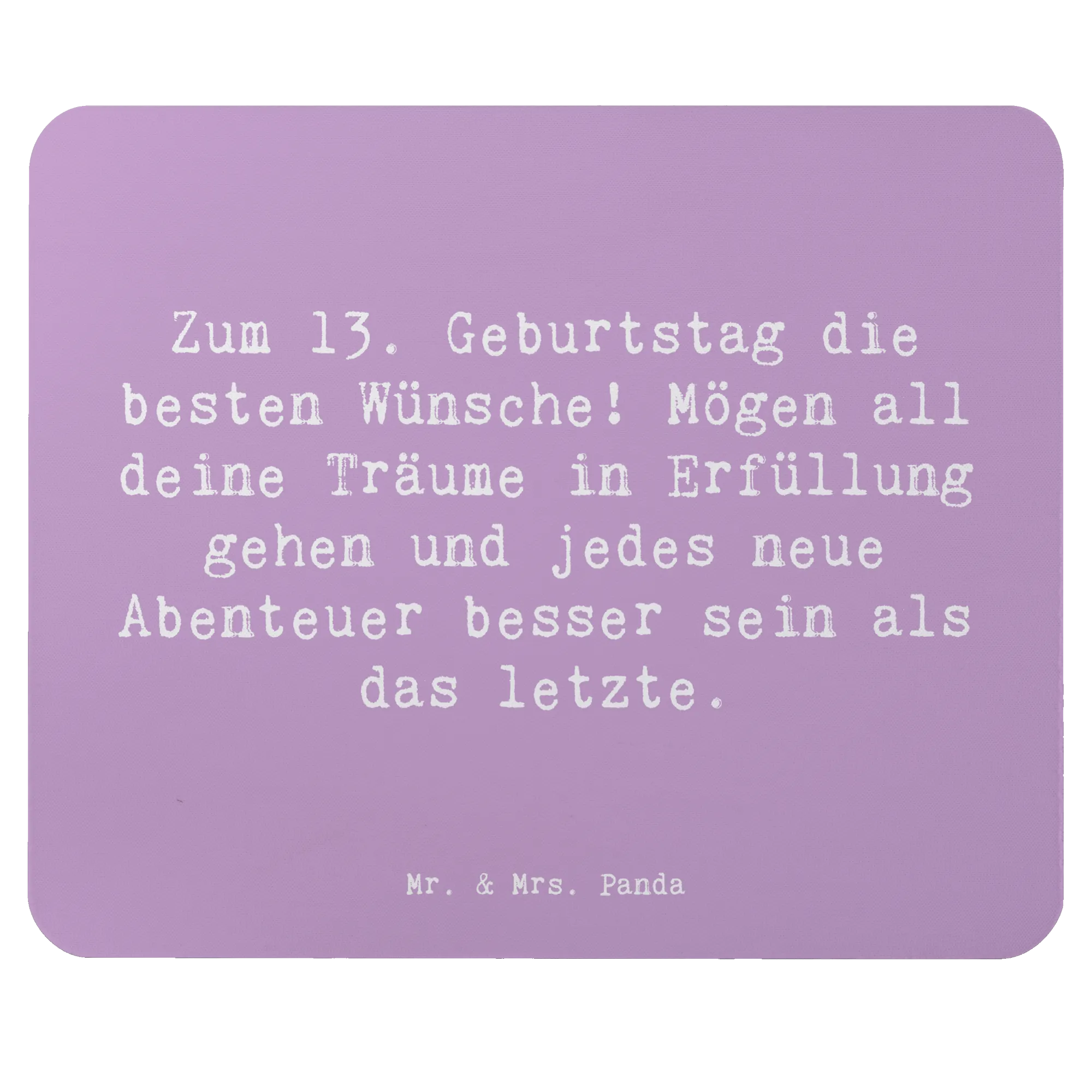Wenn du auf der Suche nach dem perfekten Geburtstagsgeschenk bist, dann ist das Mauspad "Zum 13. Geburtstag die besten Wünsche! Mögen all deine Träume in Erfüllung gehen und jedes neue Abenteuer besser sein als das letzte." von Mr. & Mrs. Panda genau das Richtige für dich! Dieses wunderschöne und einzigartige Mauspad wird nicht nur das Arbeitszimmer verschönern, sondern auch jeden Schreibtisch zu einem Ort des Wohlfühlens machen.