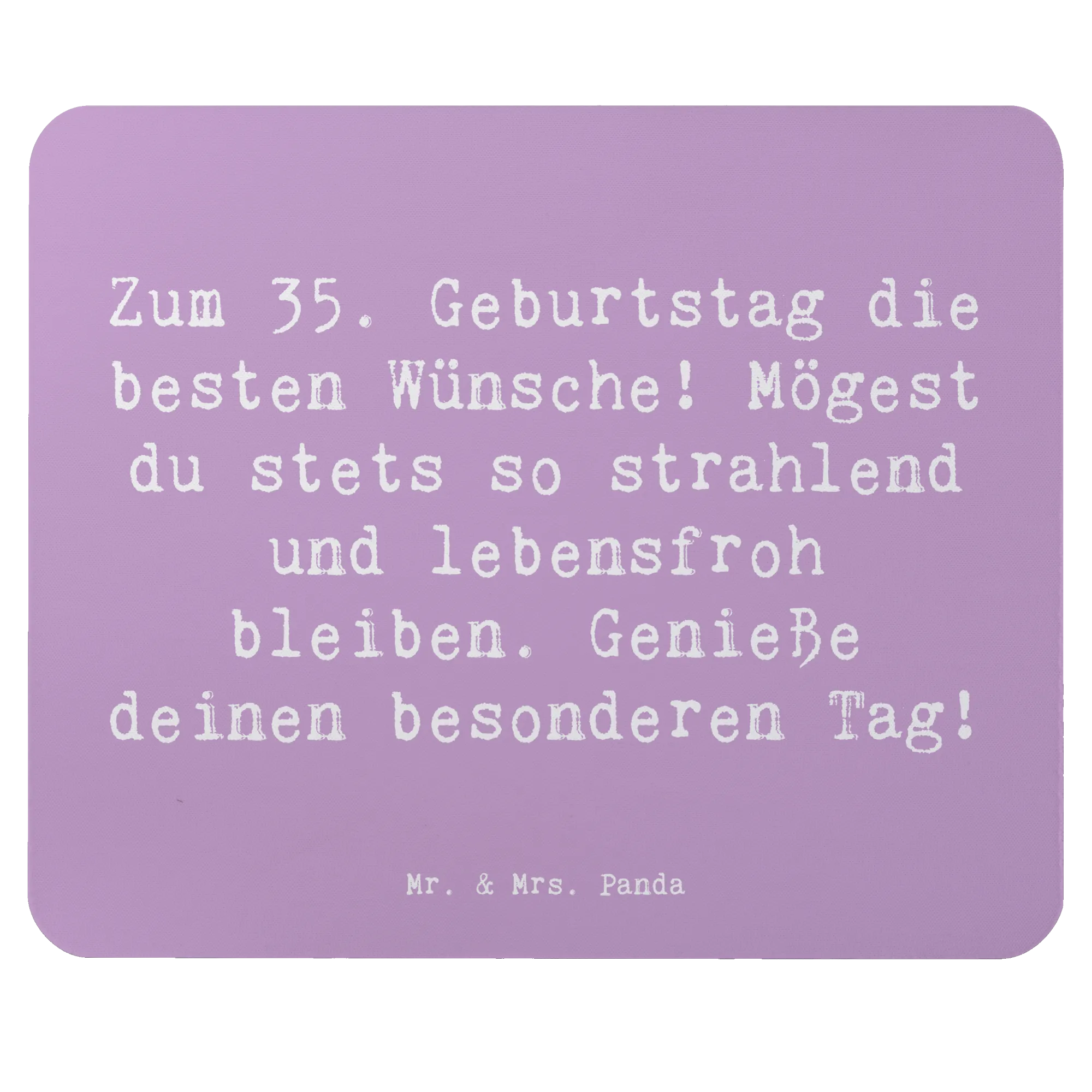 Entdecke das einzigartige Mauspad "35. Geburtstag – die besten Wünsche!" von Mr. & Mrs. Panda, das perfekte Geschenk für alle, die diesen besonderen Tag feiern! Ob für Freunde, Familie oder Arbeitskollegen, mit diesem liebevoll gestalteten Mauspad kannst du jedem eine Freude machen. Das Design wird mit einem herzlichen Slogan ergänzt: "Mögest du stets so strahlend und lebensfroh bleiben. Genieße deinen besonderen Tag!"